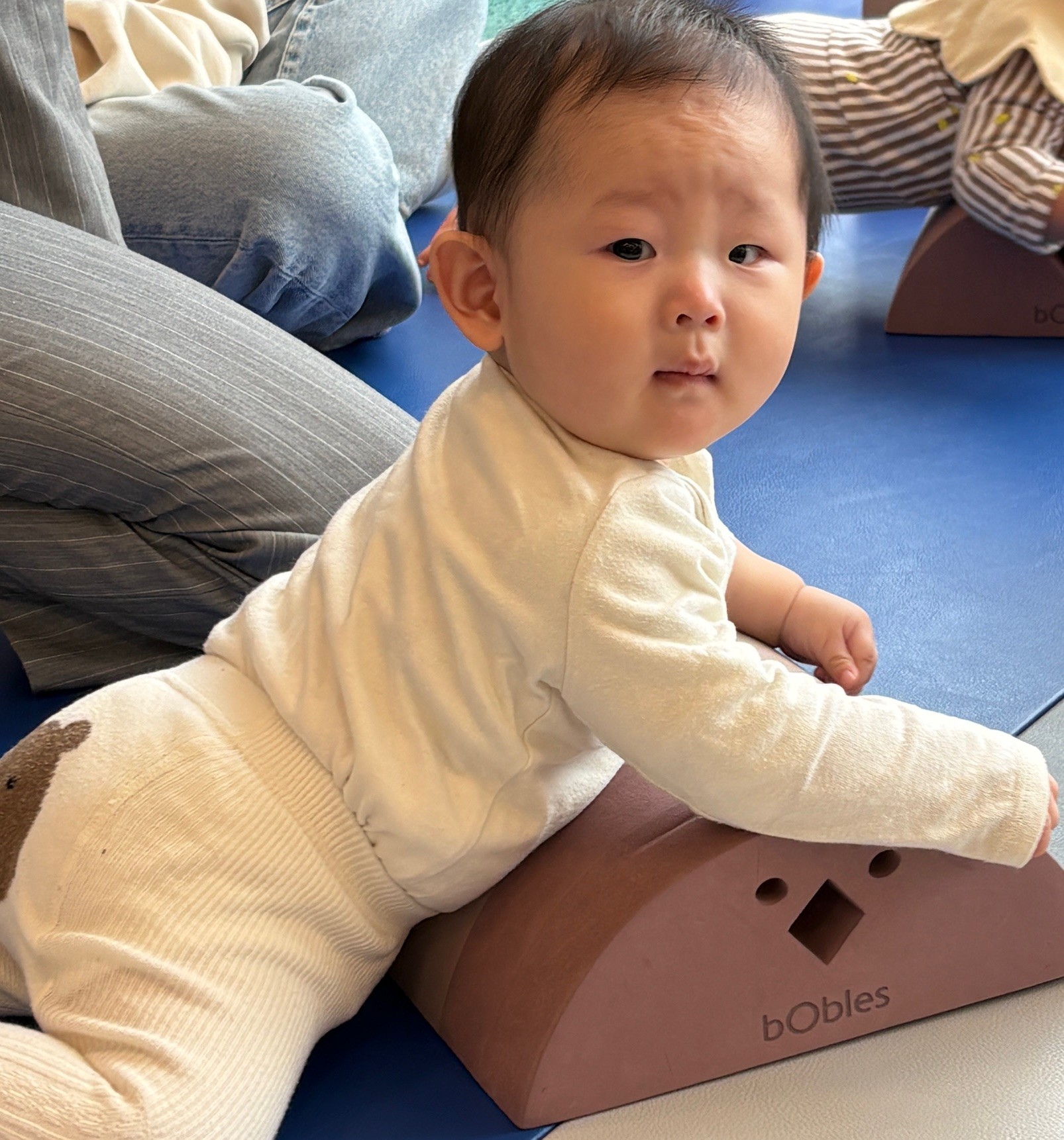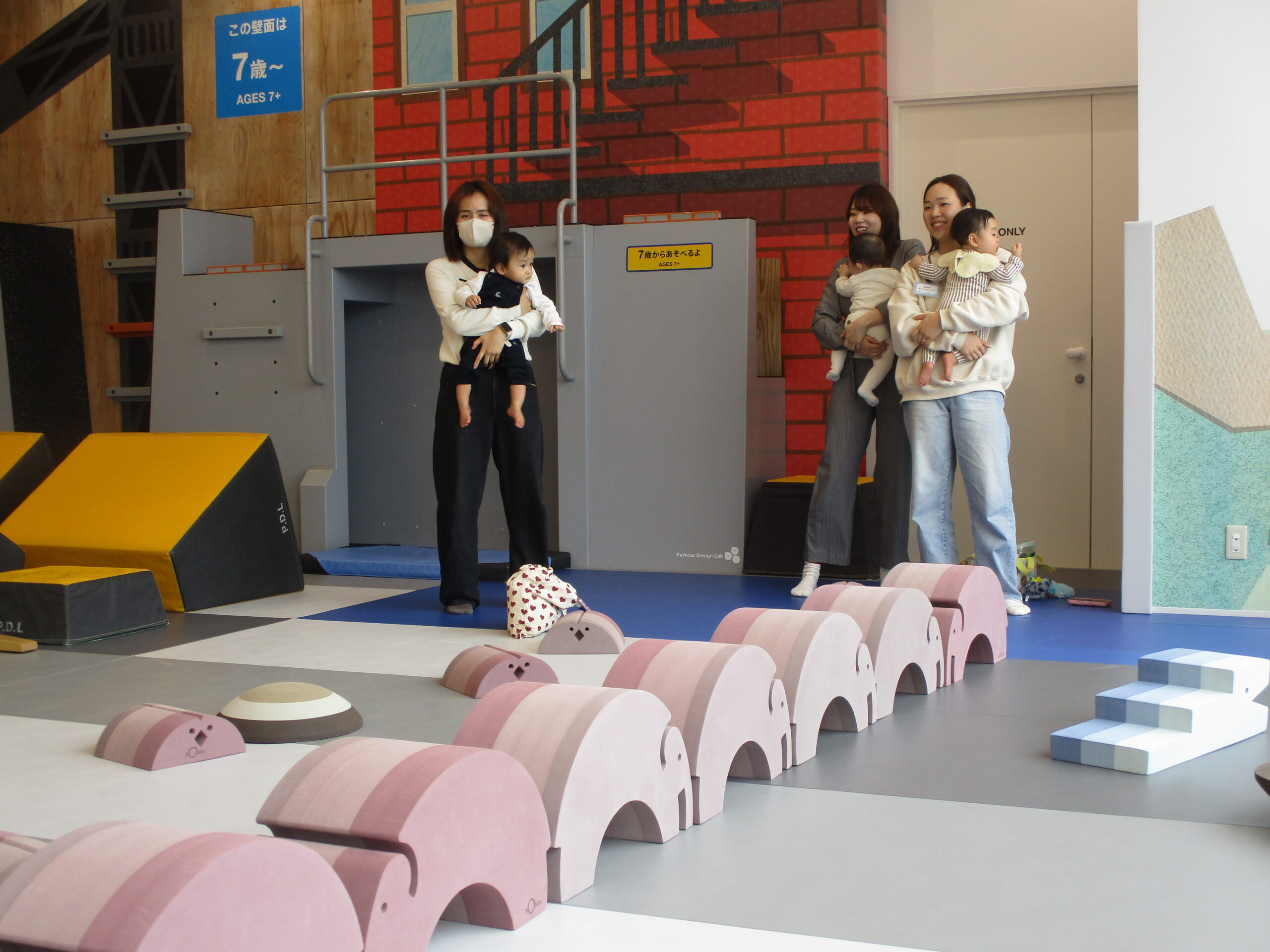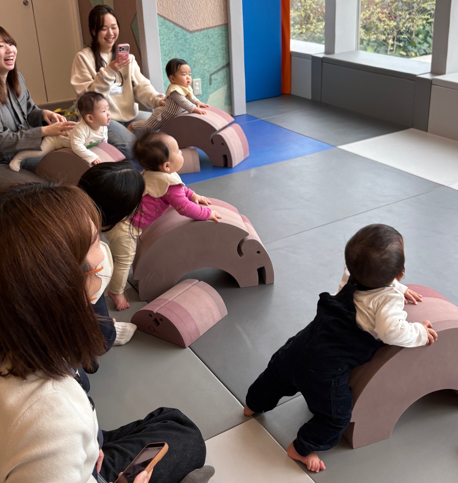 親子でチキンのボブルスに座って「むすんでひらいて」