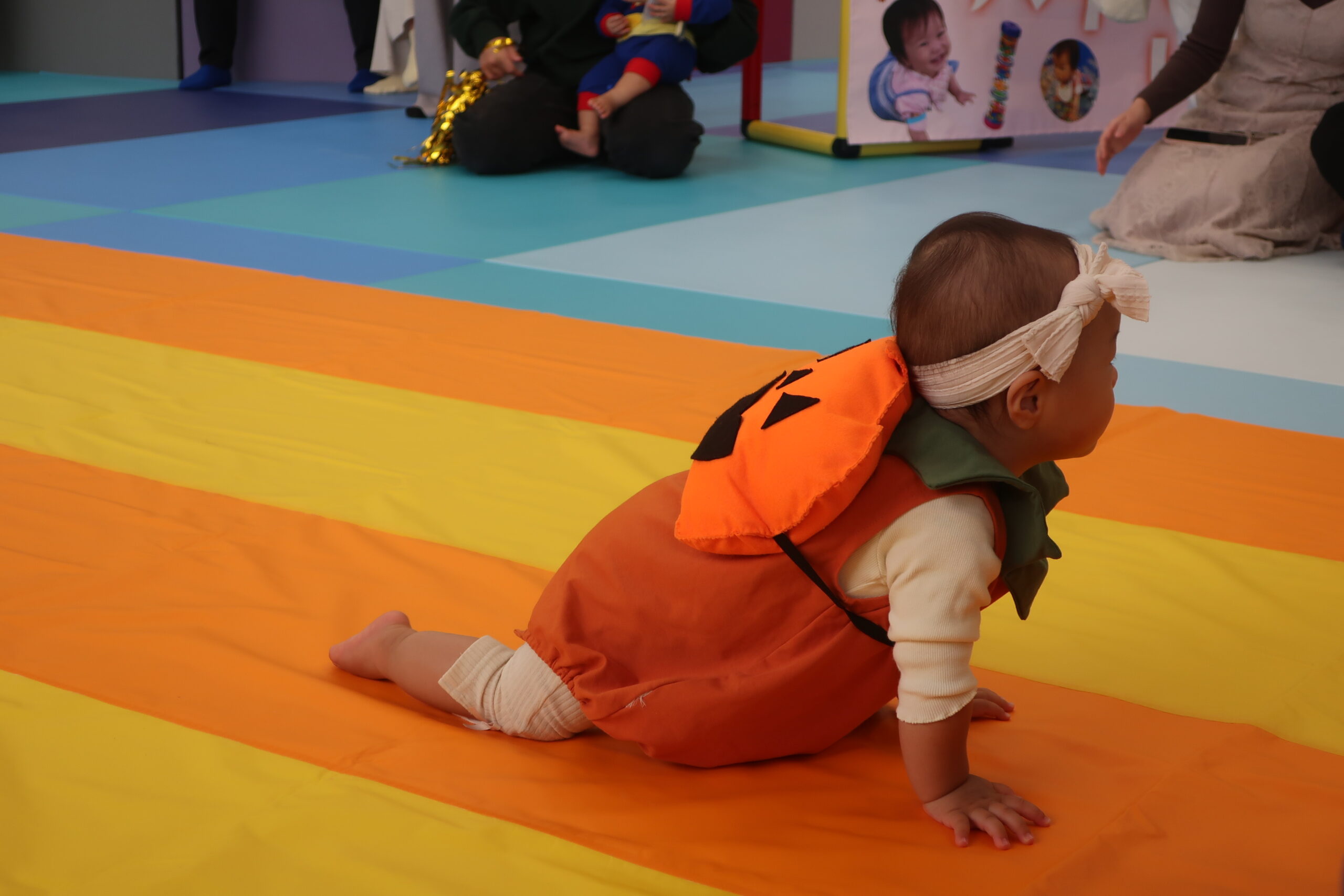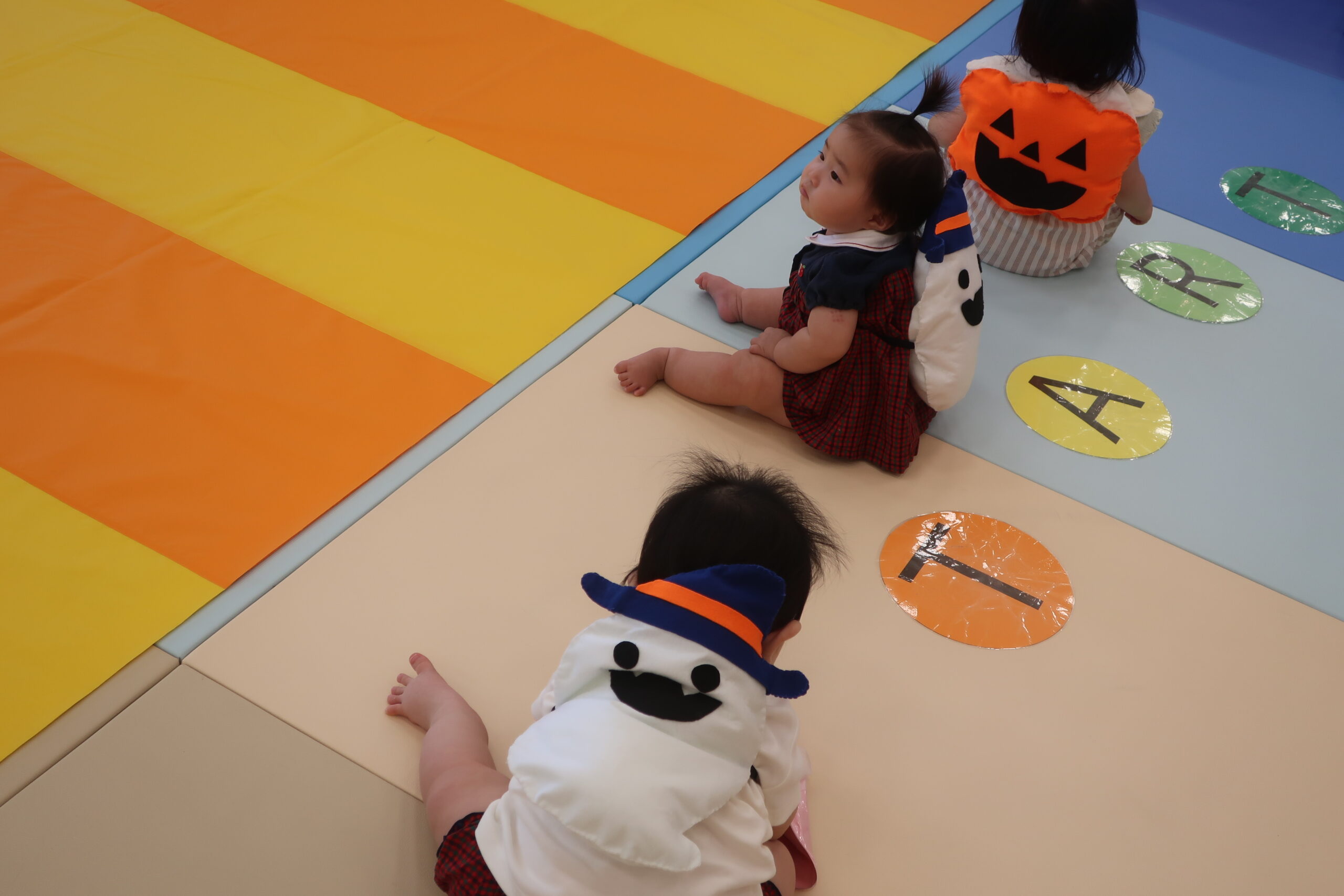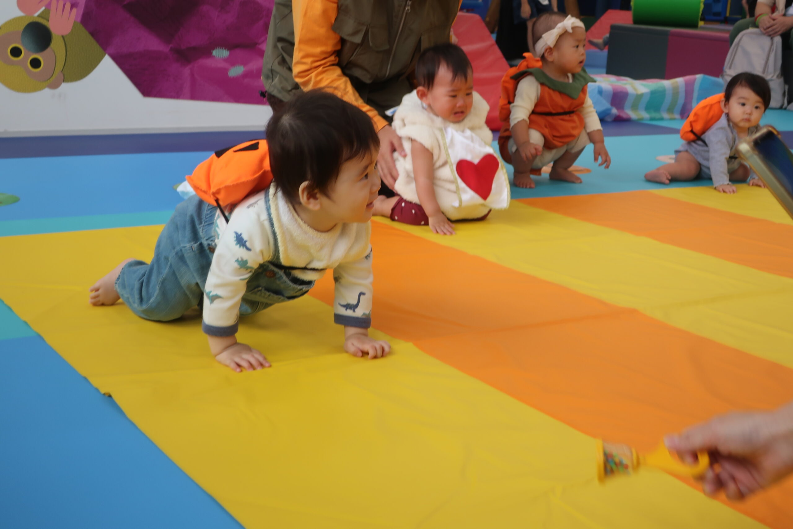 ハロウィンバージョンのハイハイレース。かぼちゃやオバケをつけてレースをしましたよ!