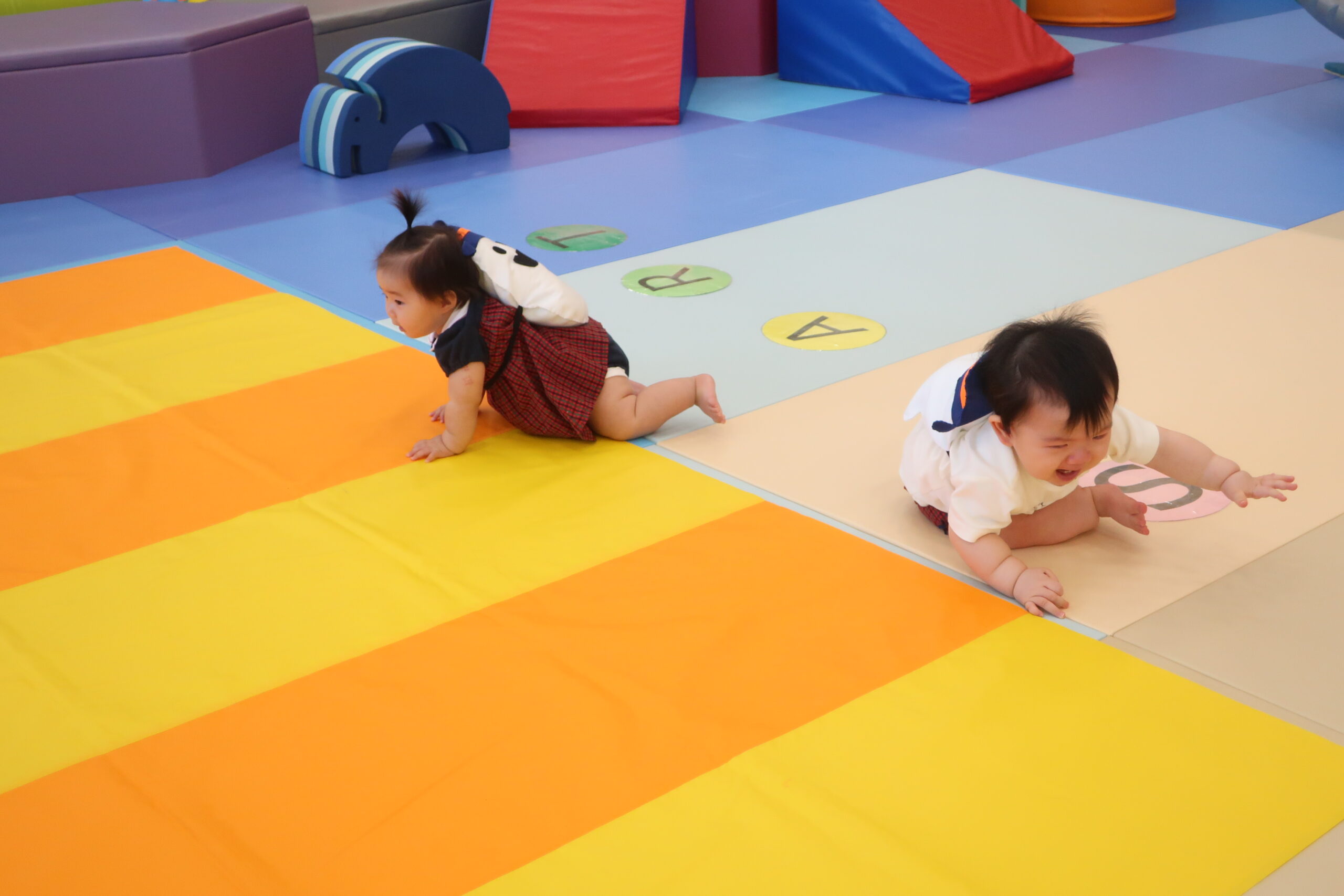 いよいよハイハイレースのスタートです!この日のレースはかわいい生き物に変身しました。