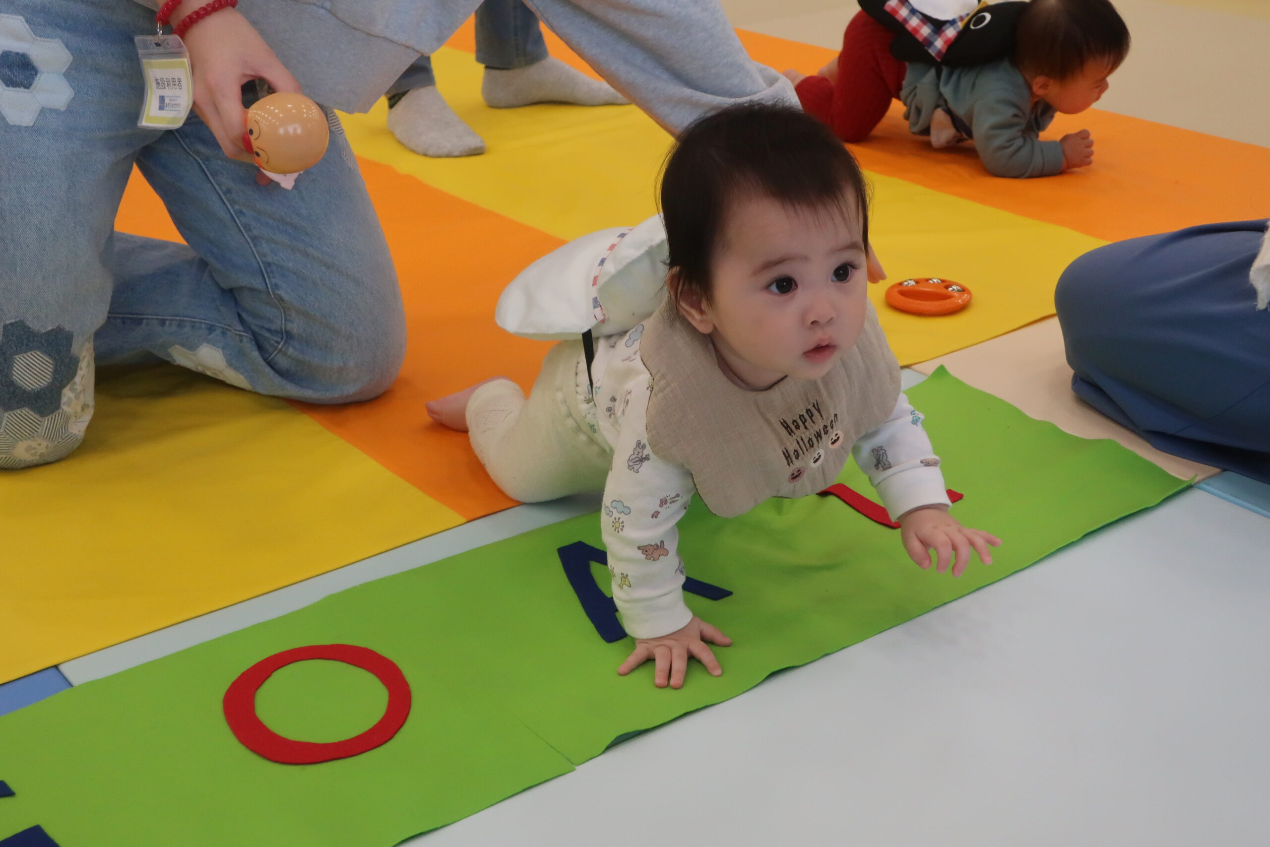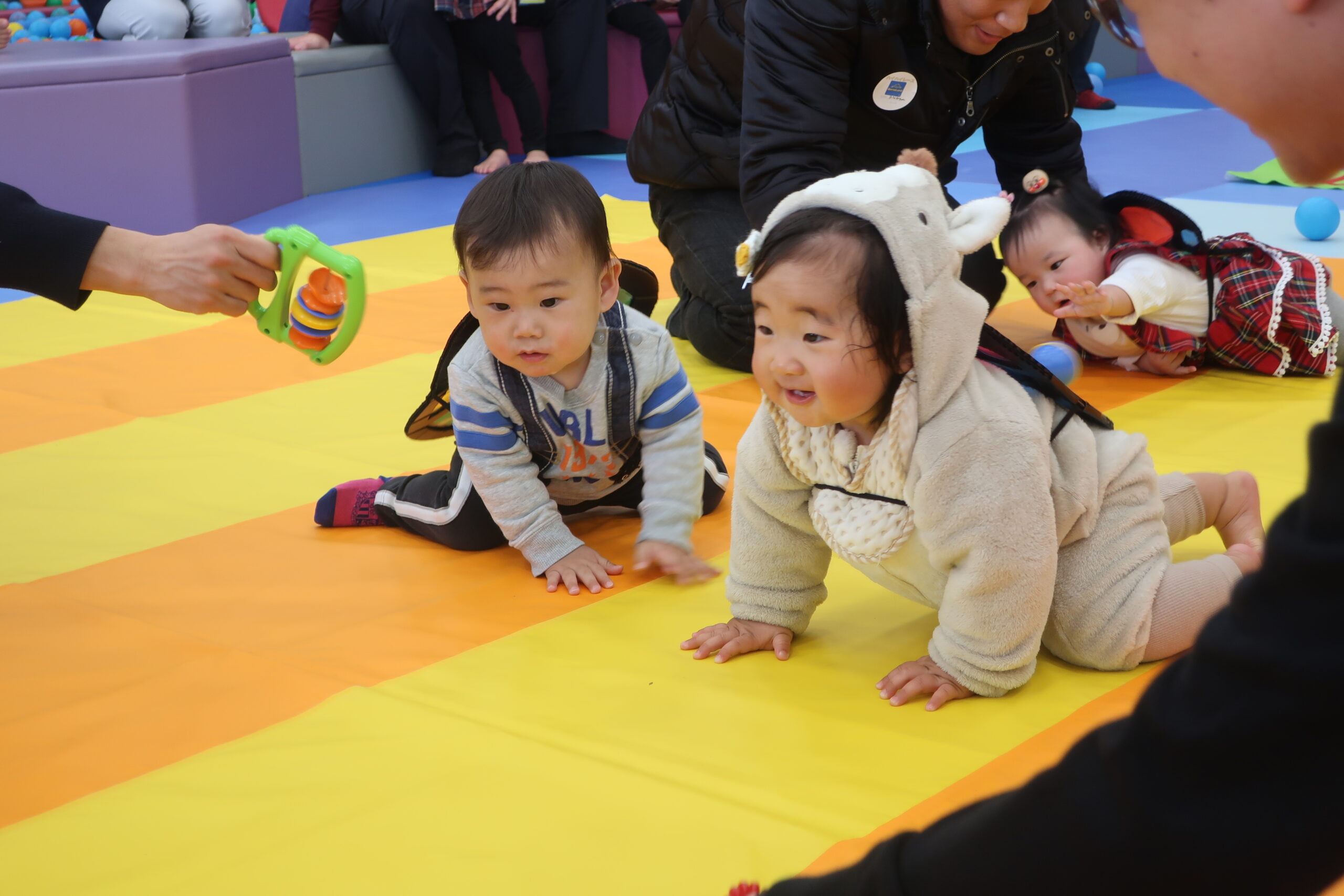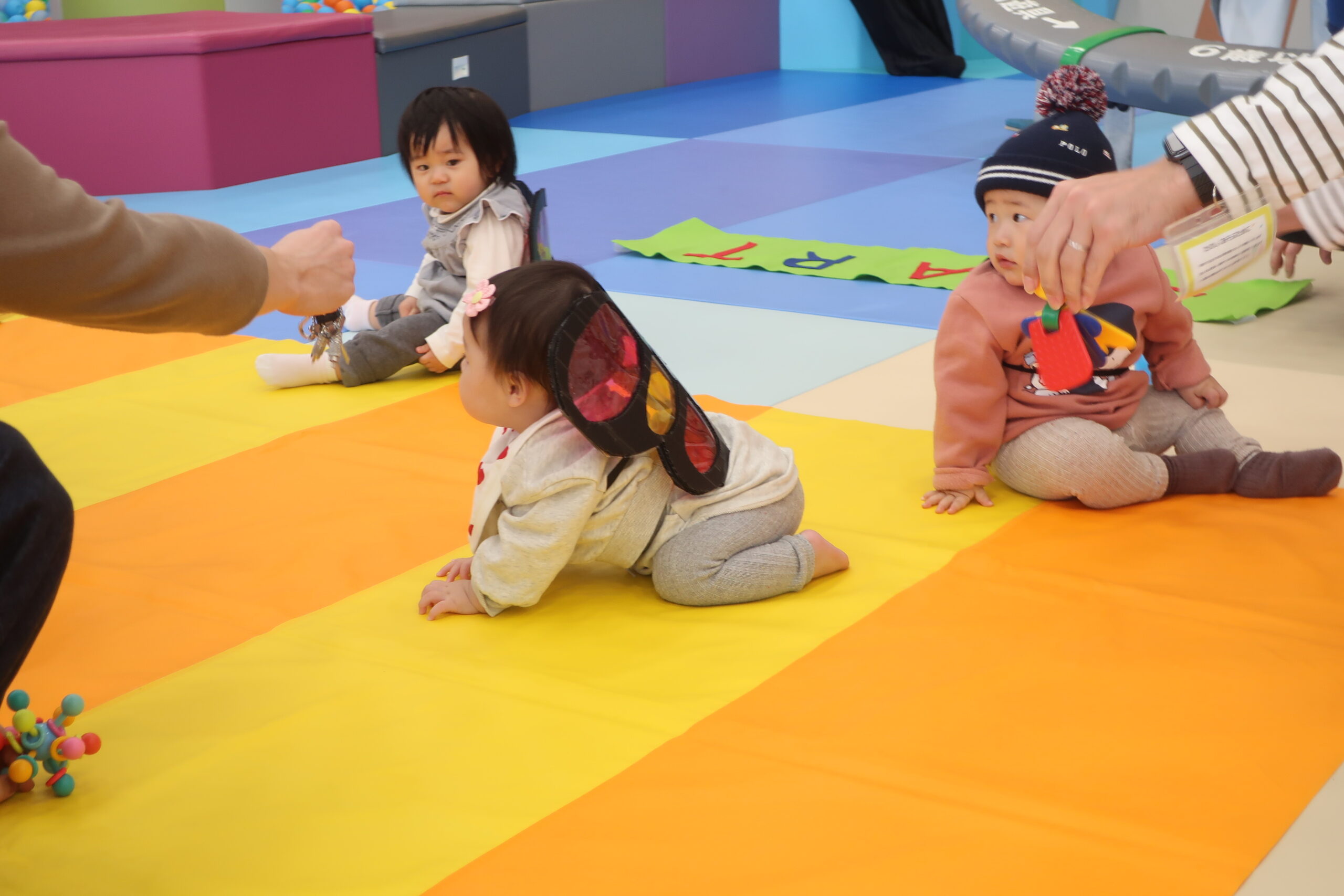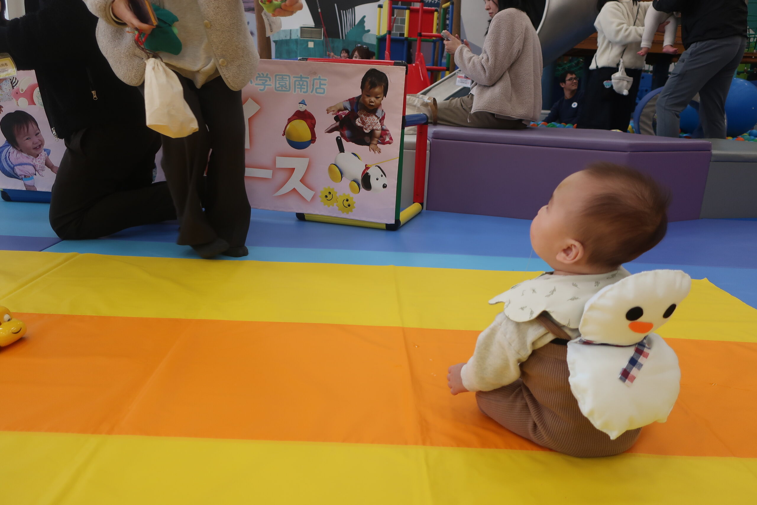 この日はゆきだるまやペンギンを背中につけてハイハイレースを行いました!