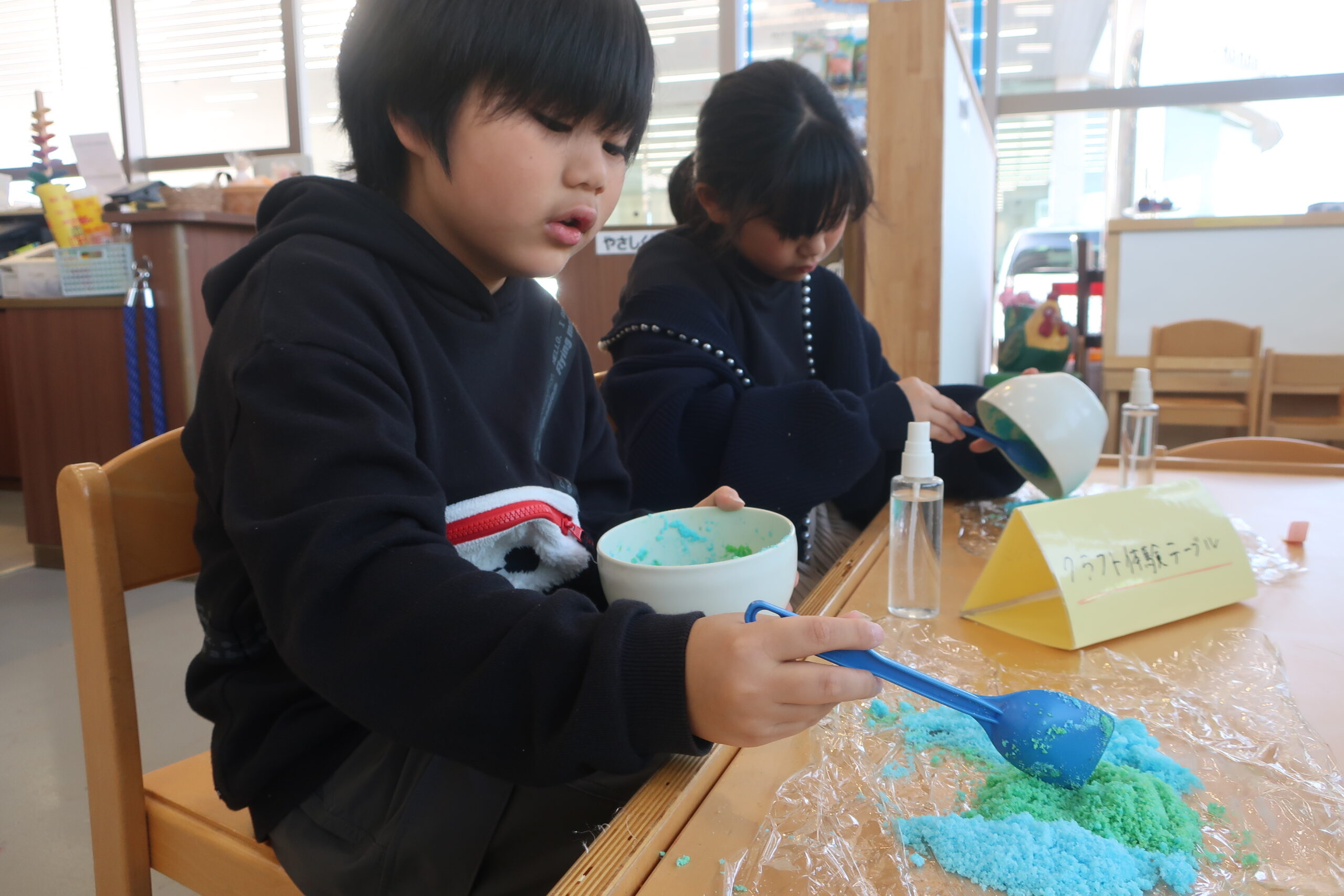 クラフト体験を通じて季節を感じられる作品作りや、身近な物を使ってちょっとした科学実験を楽しめます。
