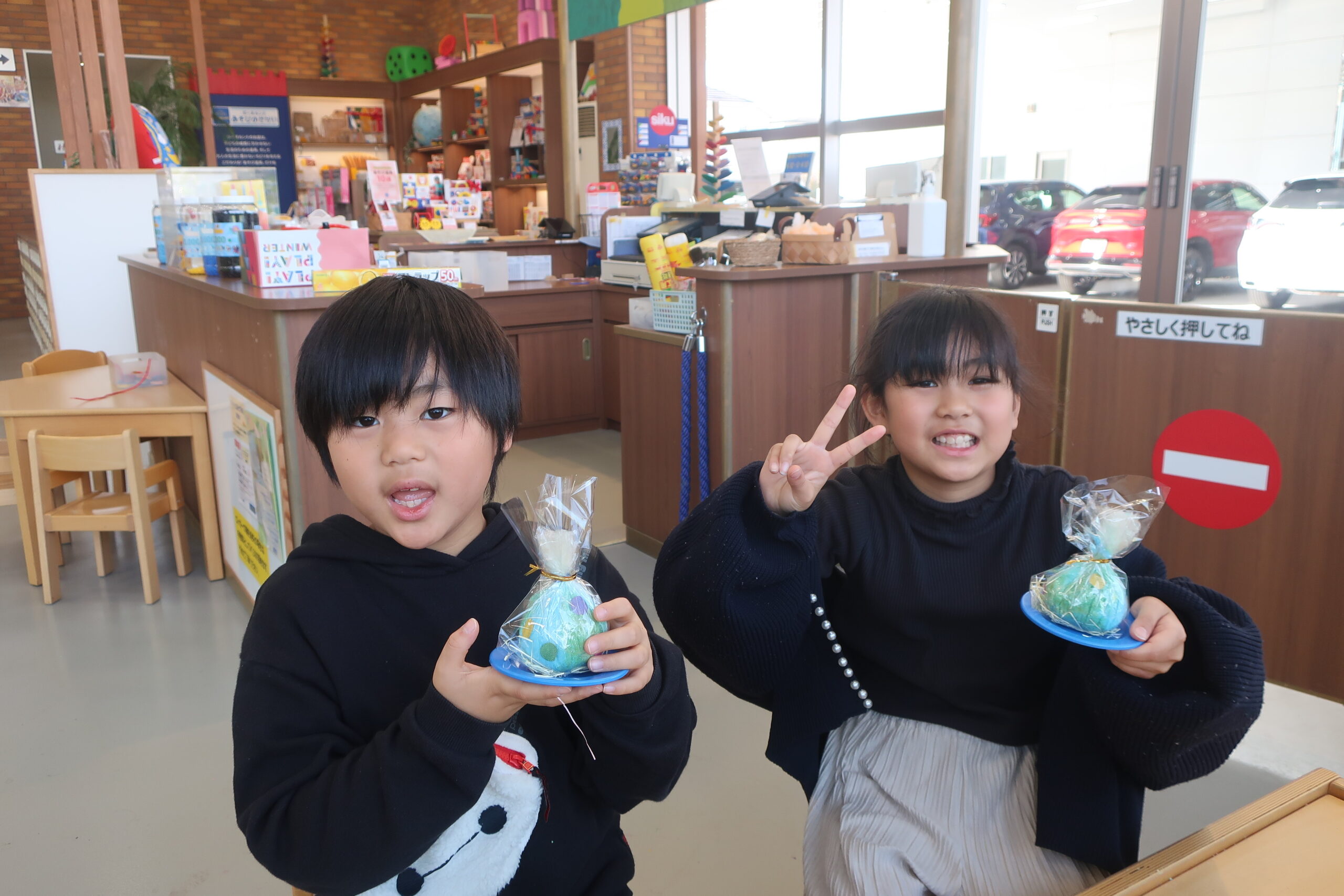 バスボールの中に何が入っているかはお家に帰ってからのおたのしみです。