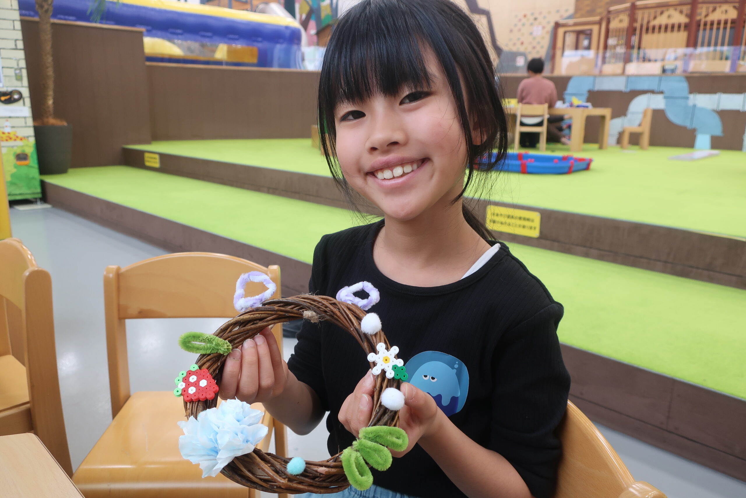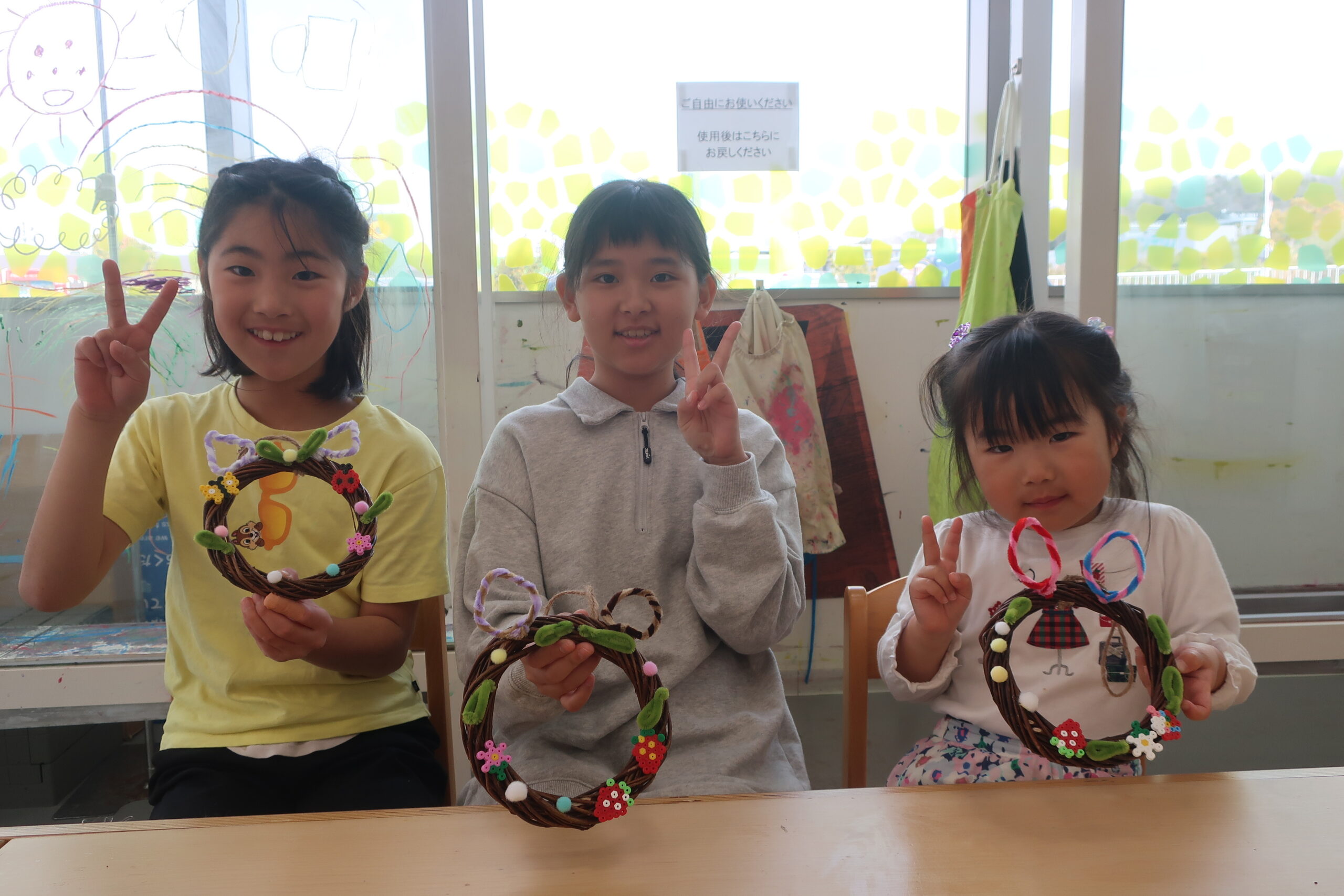 4月のクラフト体験会は『ふしぎなお花と春のどうぶつリース』を開催中です。