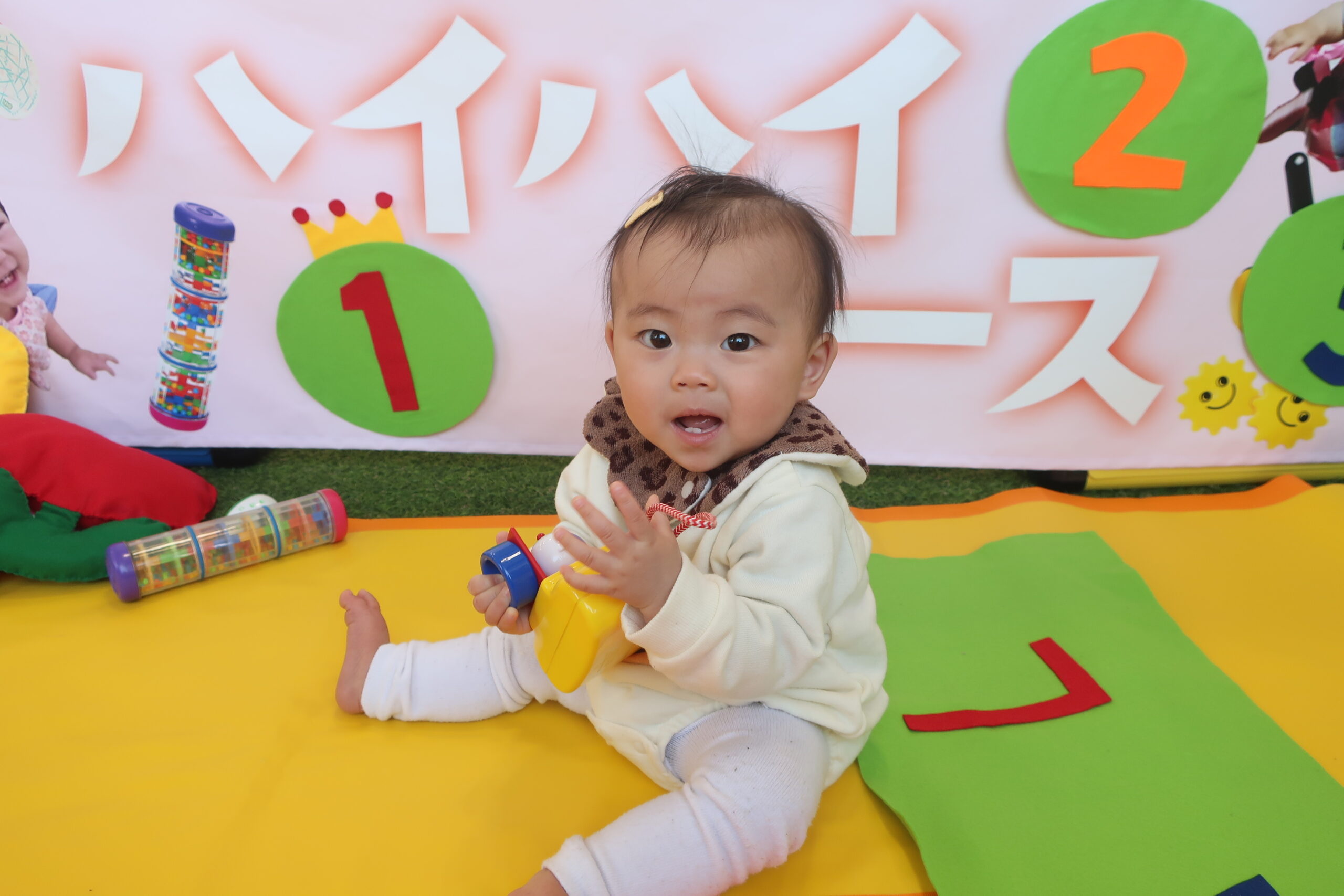 一緒にハイハイレースをしたお友だちと写真を撮りましたよ!