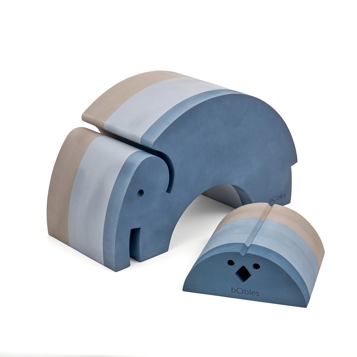 ゾウのモチーフは、横にしてつかまり立ちの台にしたり、ハイハイや歩いて登ったり、上からジャンプしたり、ひっくり返してバランス遊びをしたりと交差運動やバランス感覚を育みます。多様なからだ遊びが楽しむ事が可能です。