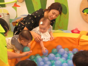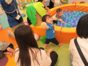 最後は、ボールプールのボールに触れたり、投げたりしたよ!