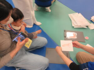 保護者の皆様には音の鳴る遊具を持って、ゴールまで応援していただきました!