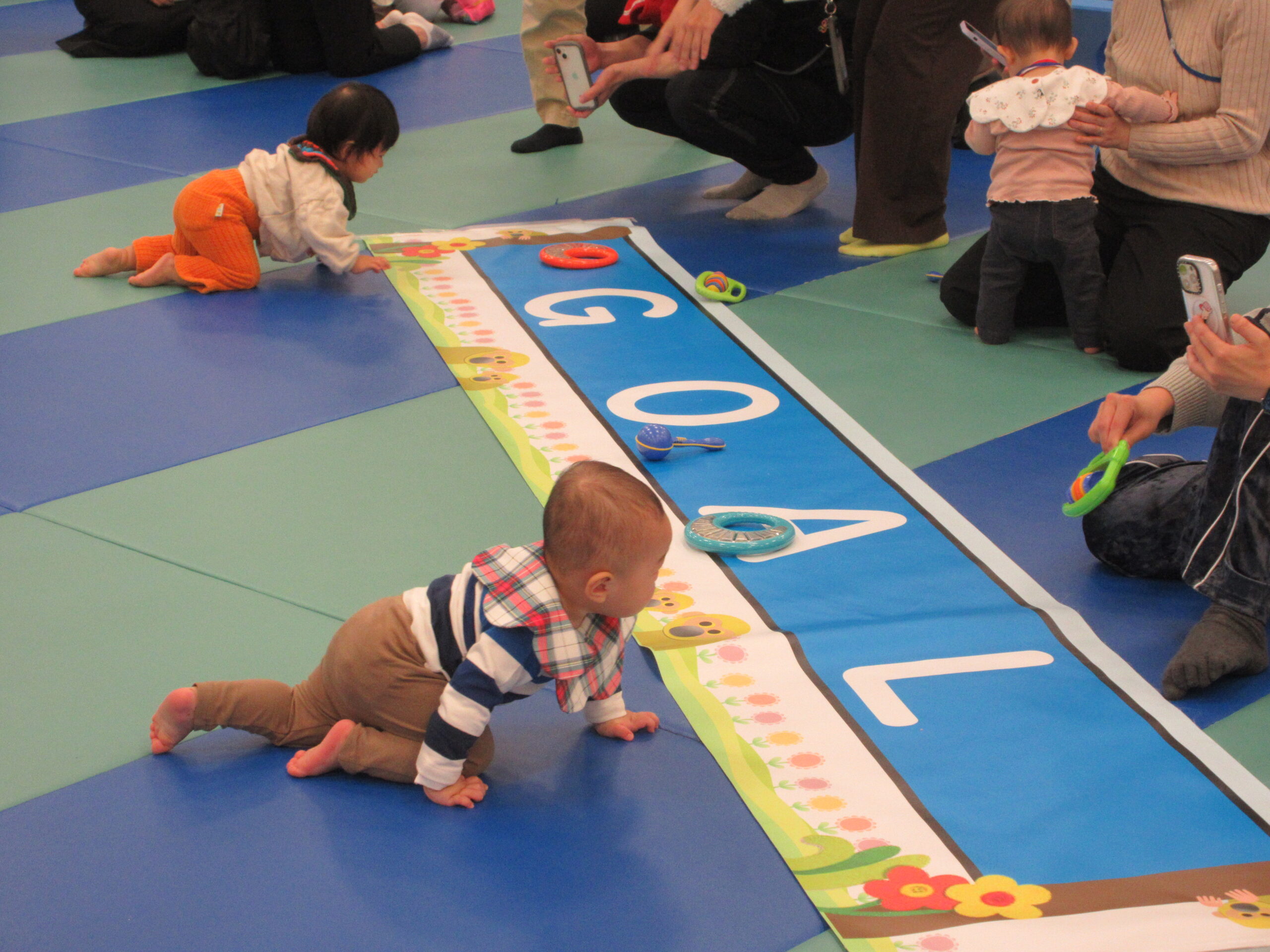保護者の皆様には音の鳴る遊具を持って、ゴールまで応援していただきました!