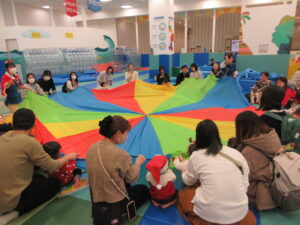 まずは、手遊びうたで「あわてんぼうのサンタクロース🎅」をうたいました♪