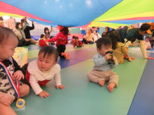 保護者の皆様には音の鳴る遊具を持って、ゴールまで応援していただきました!