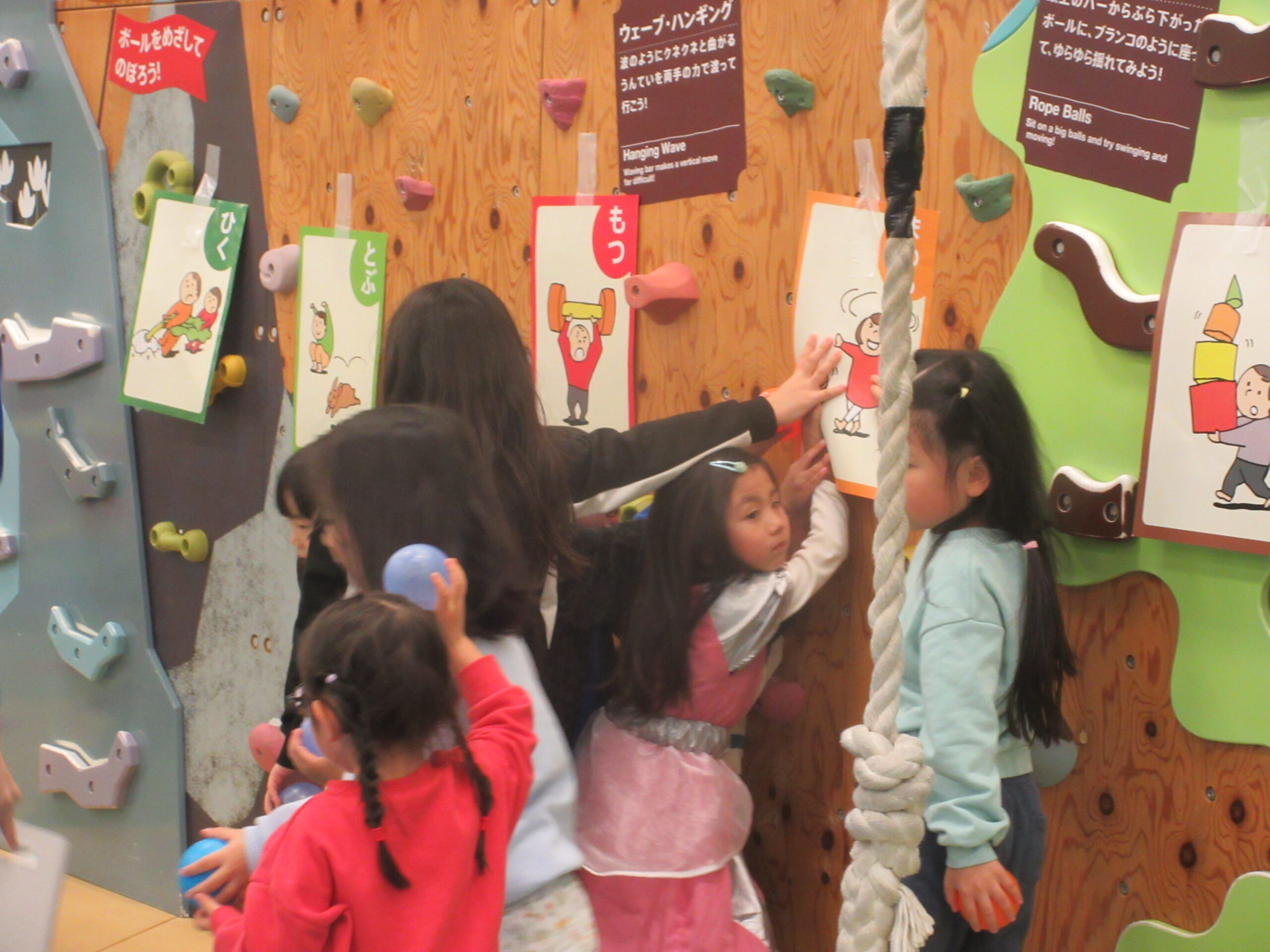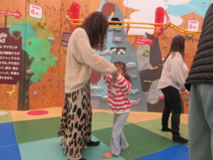今回は、HABAという遊具にカルタを貼って、読み札をプレイリーダーが読んだ後に、みんなに正しい札をゆびさしてもらったよ!!