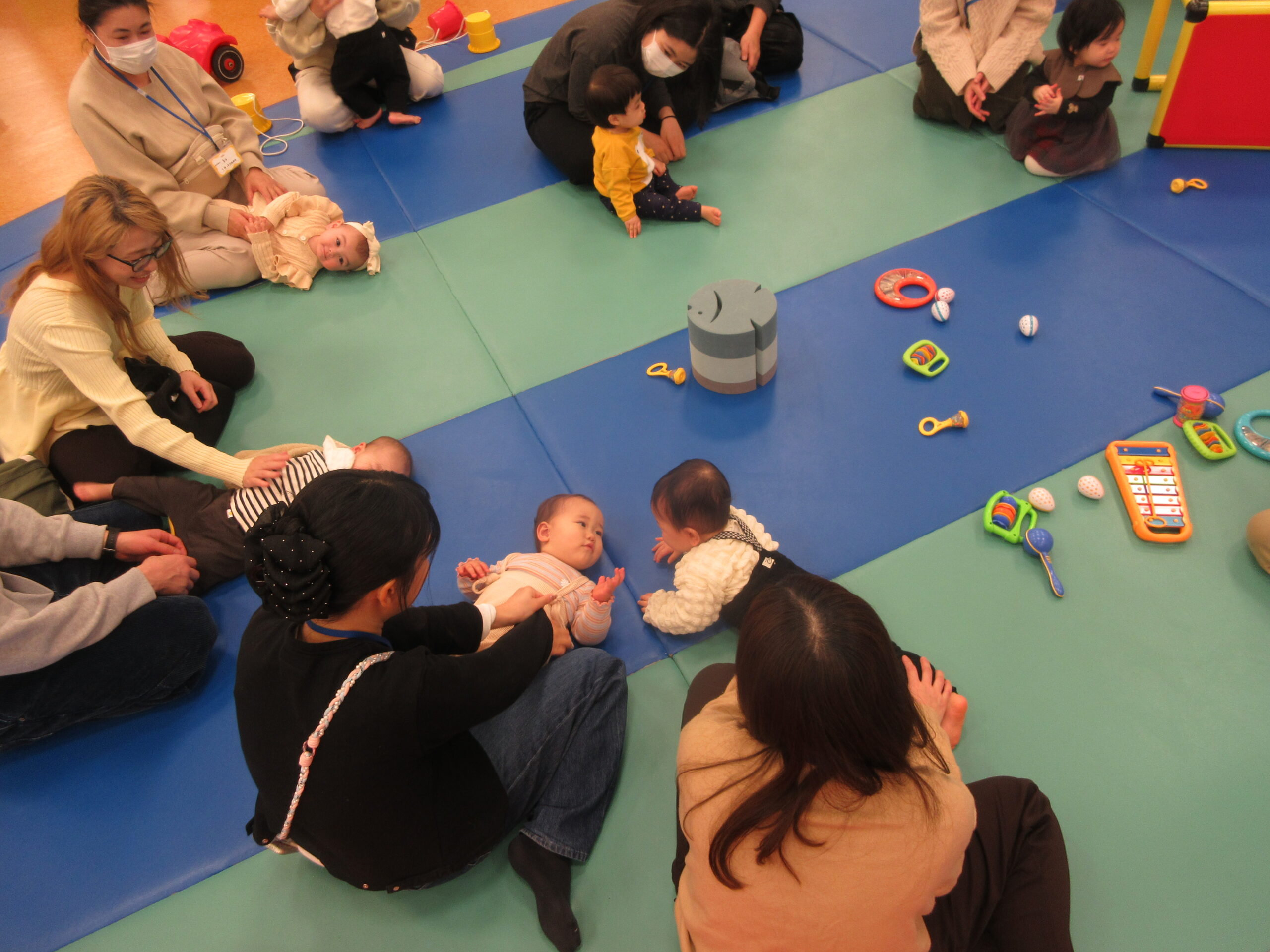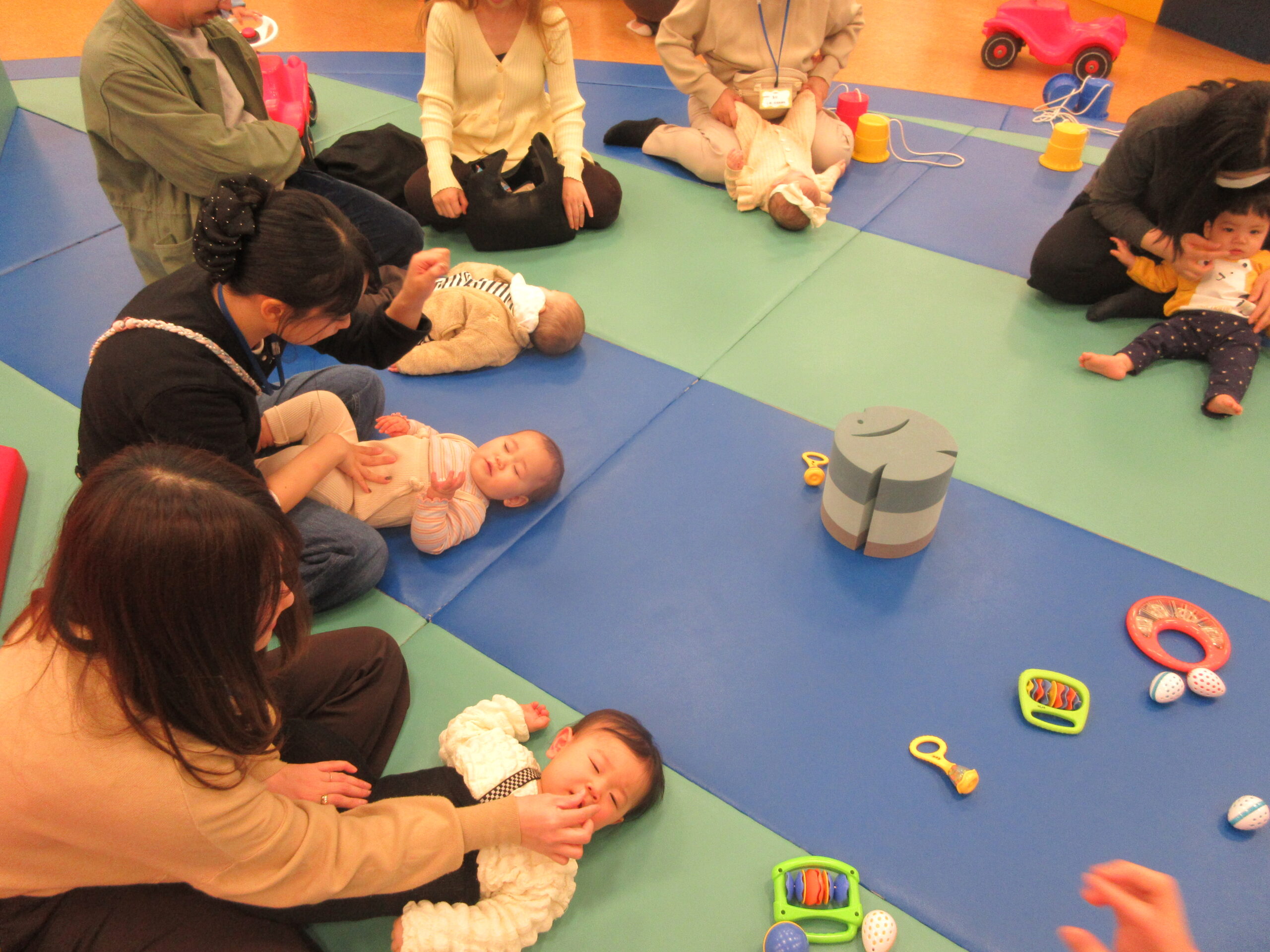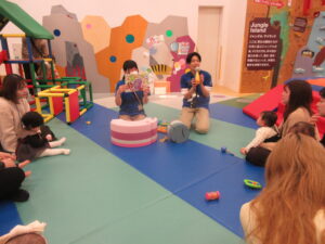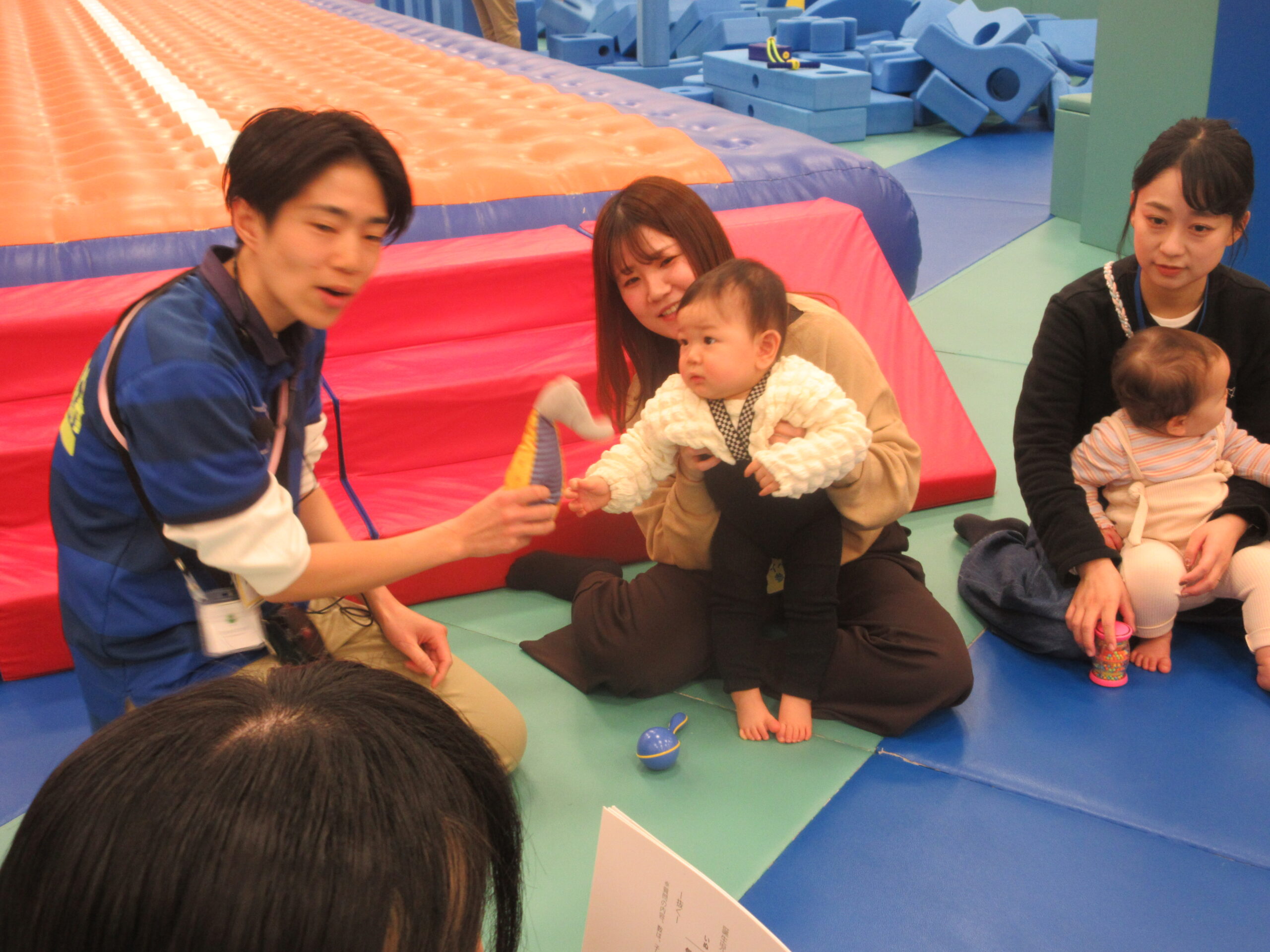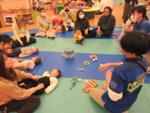 まずはボールプールに入って「ひげじいさん」の手遊びをして、すべり台を楽しんだりしました🔴🔵