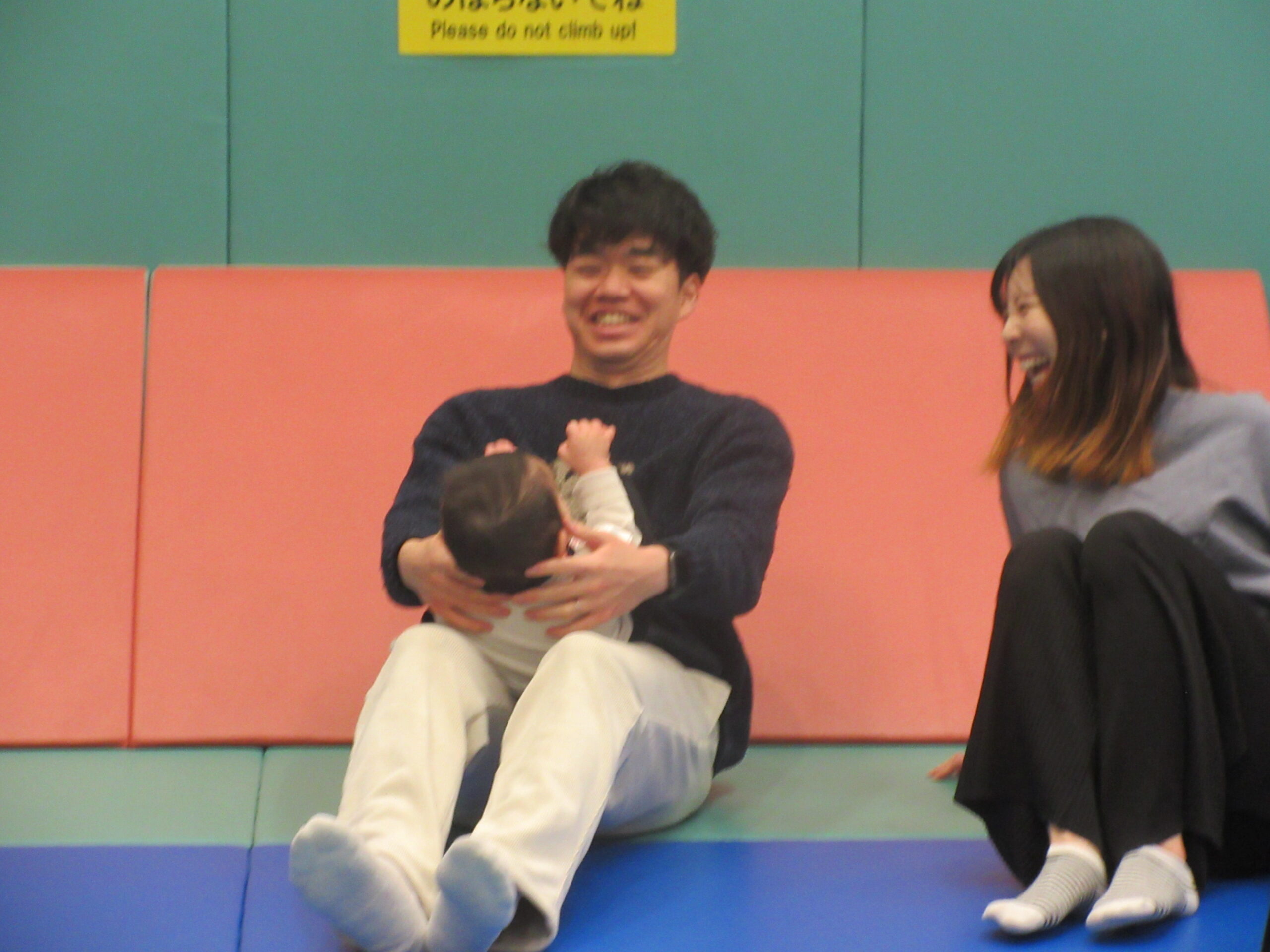 歌いながら、抱っこでジャンプや脚上げをしたよ!
