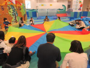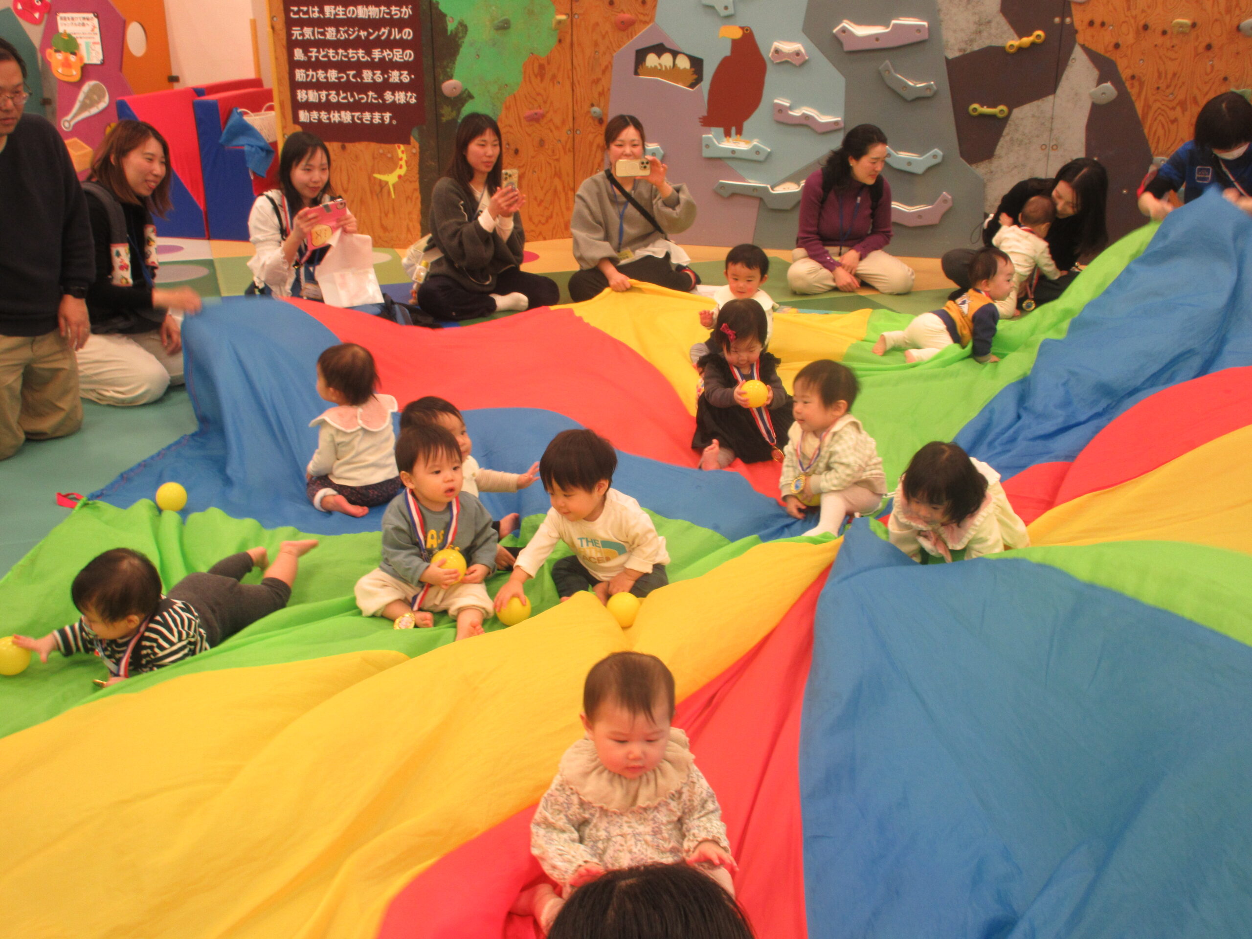 保護者の皆様には音の鳴る遊具を持って、ゴールまで応援していただきました!