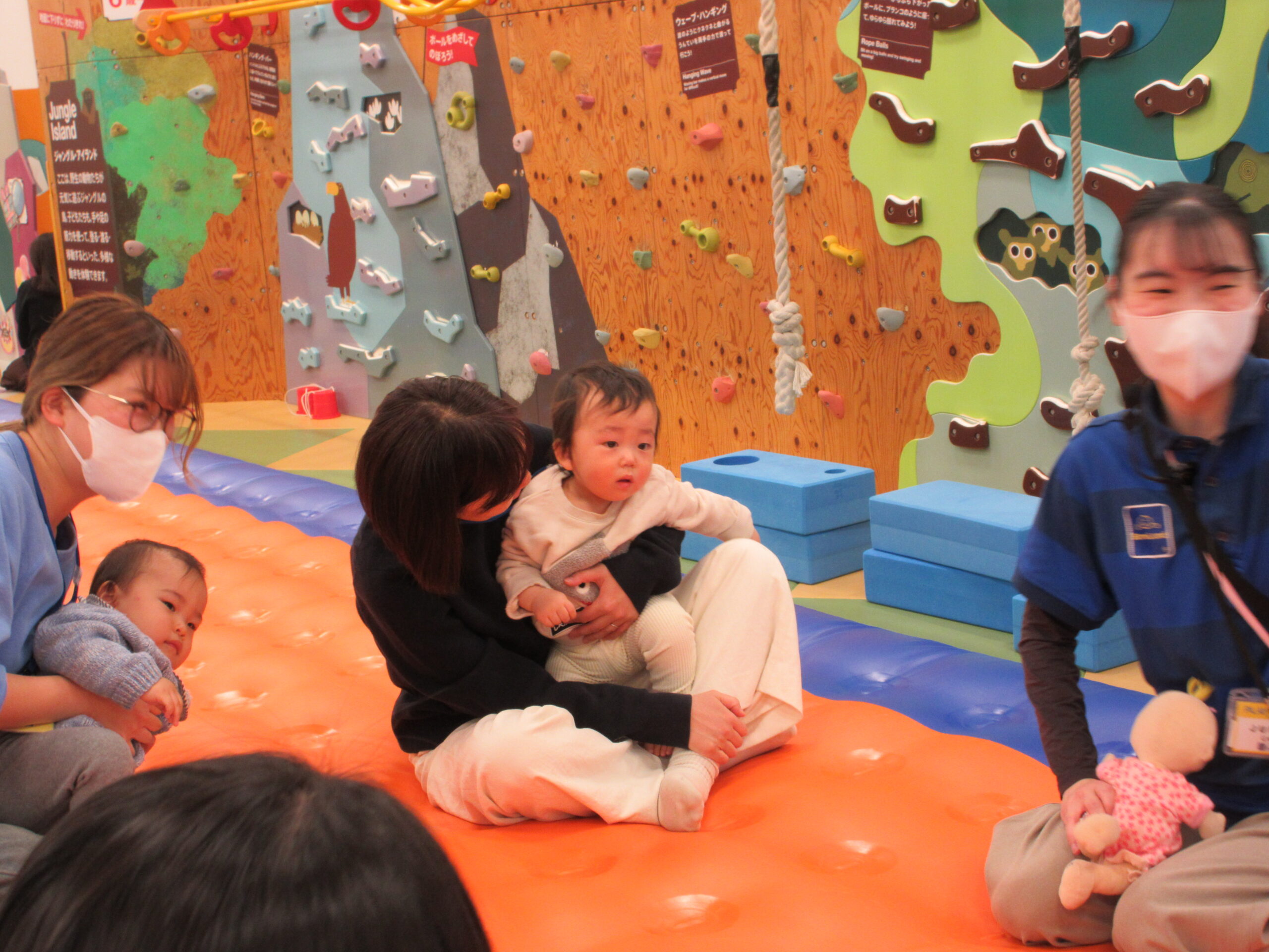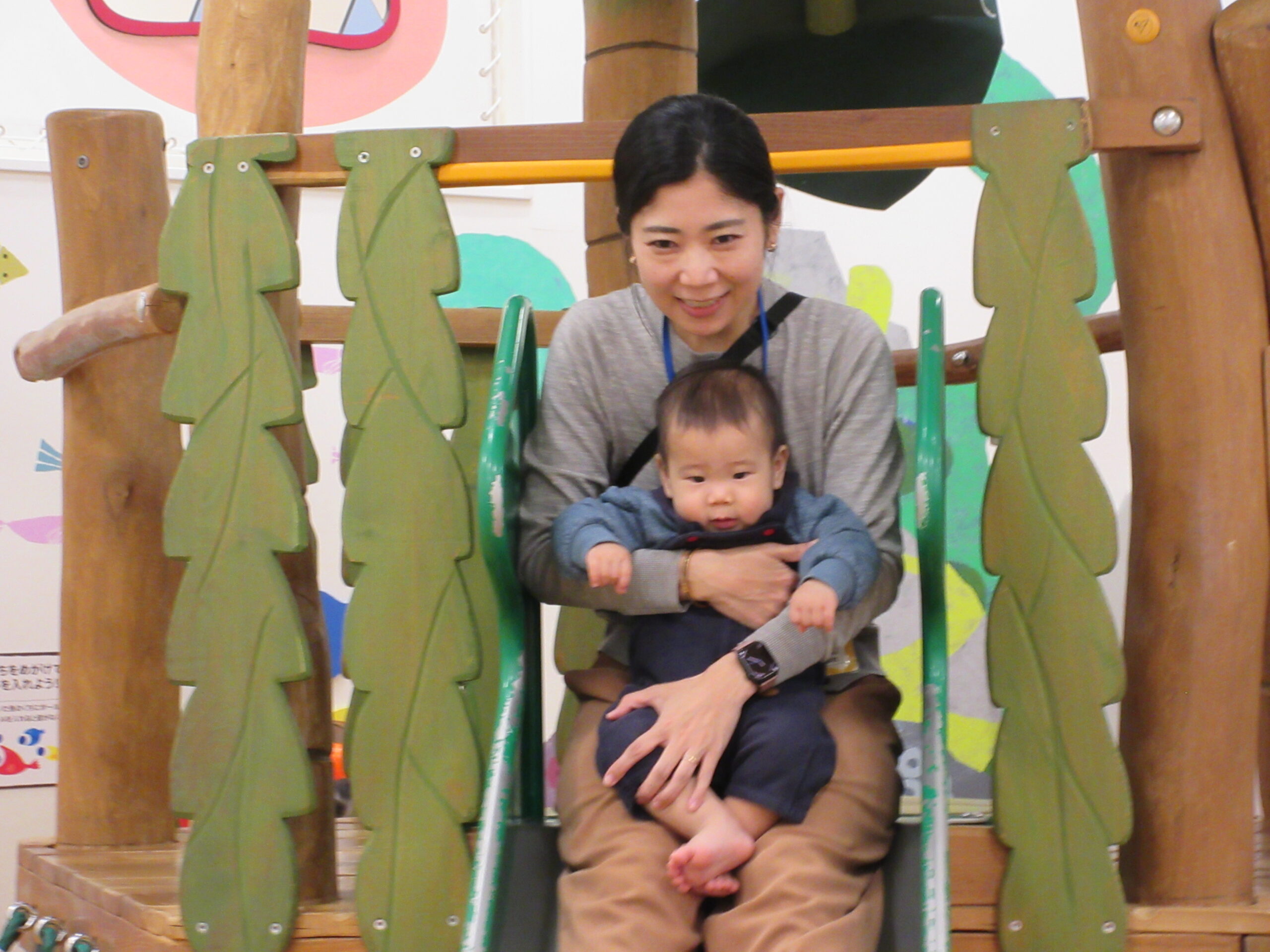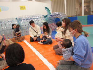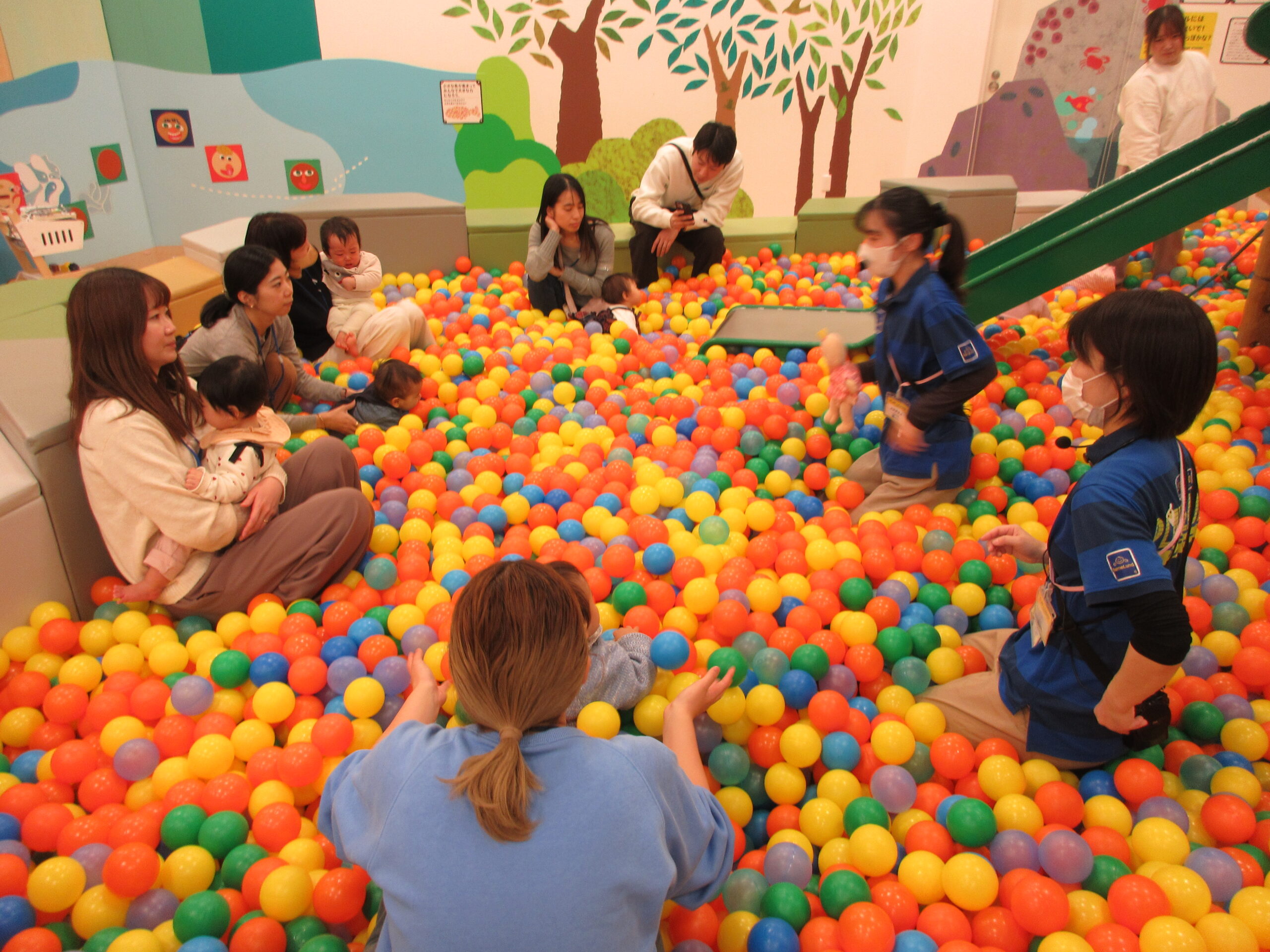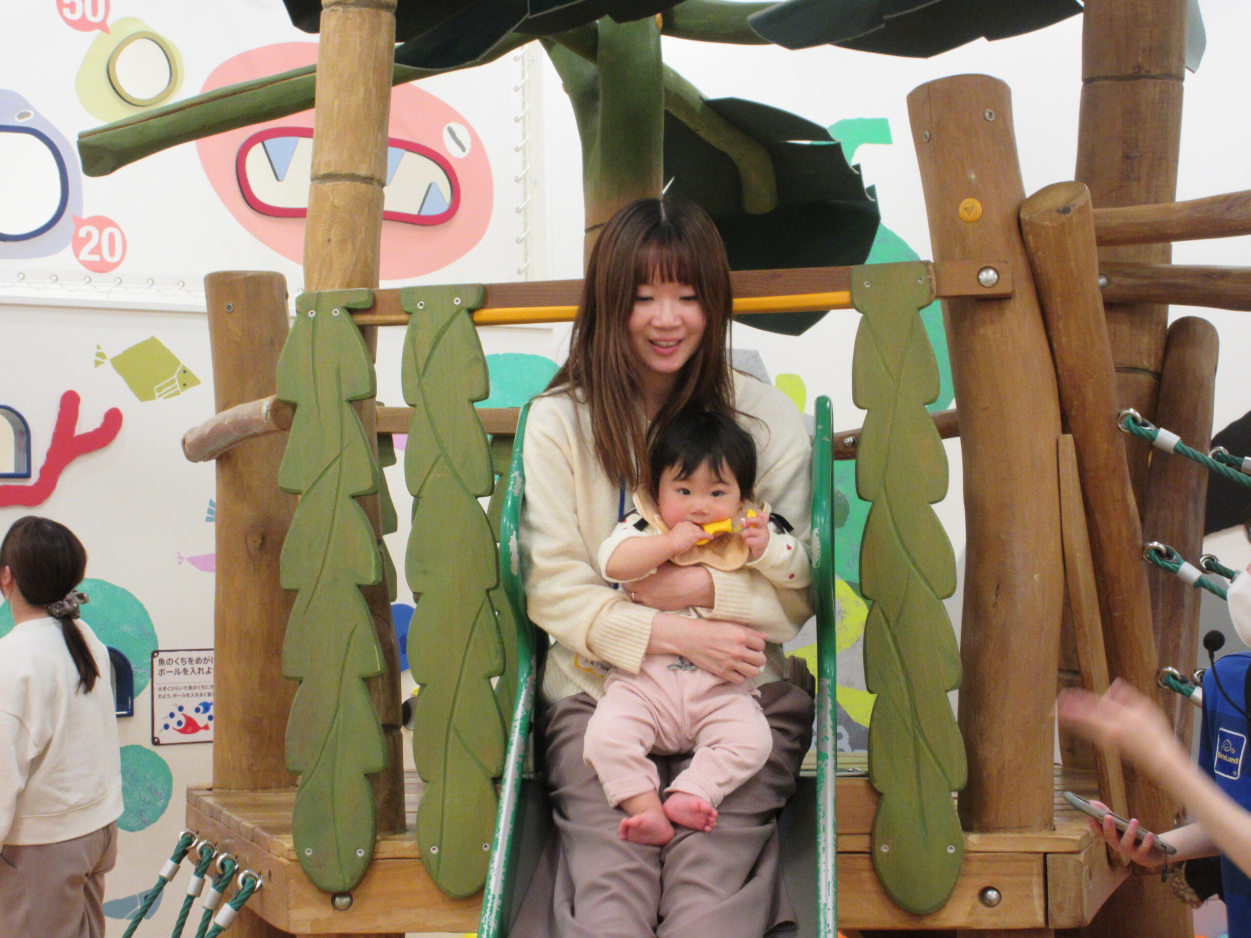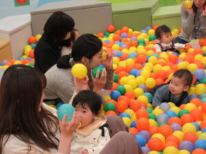 まずはボールプールに入って「ひげじいさん」の手遊びをして、すべり台を楽しんだりしました🔴🔵