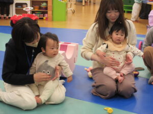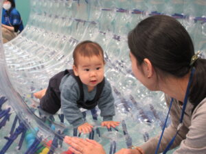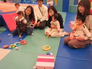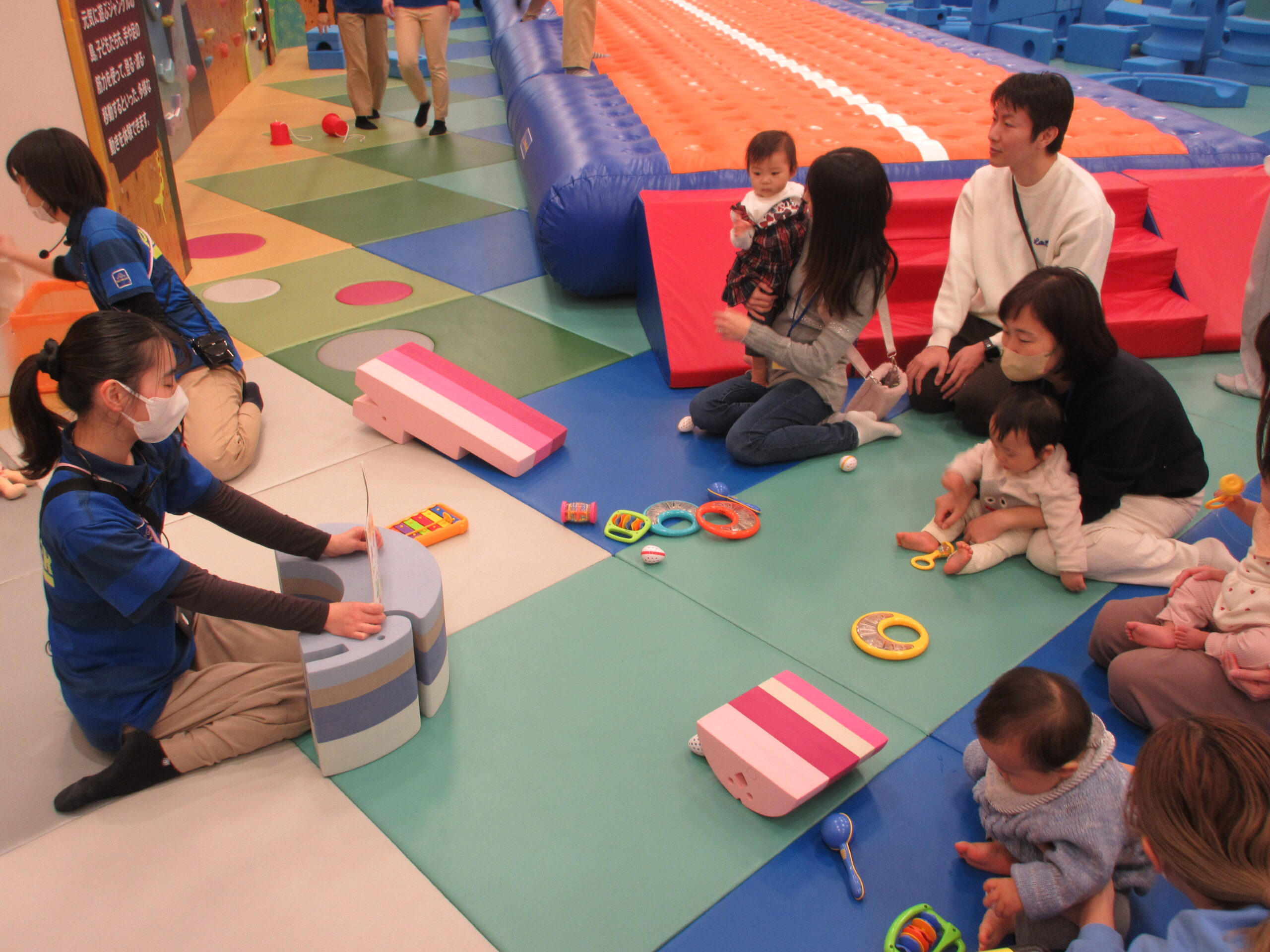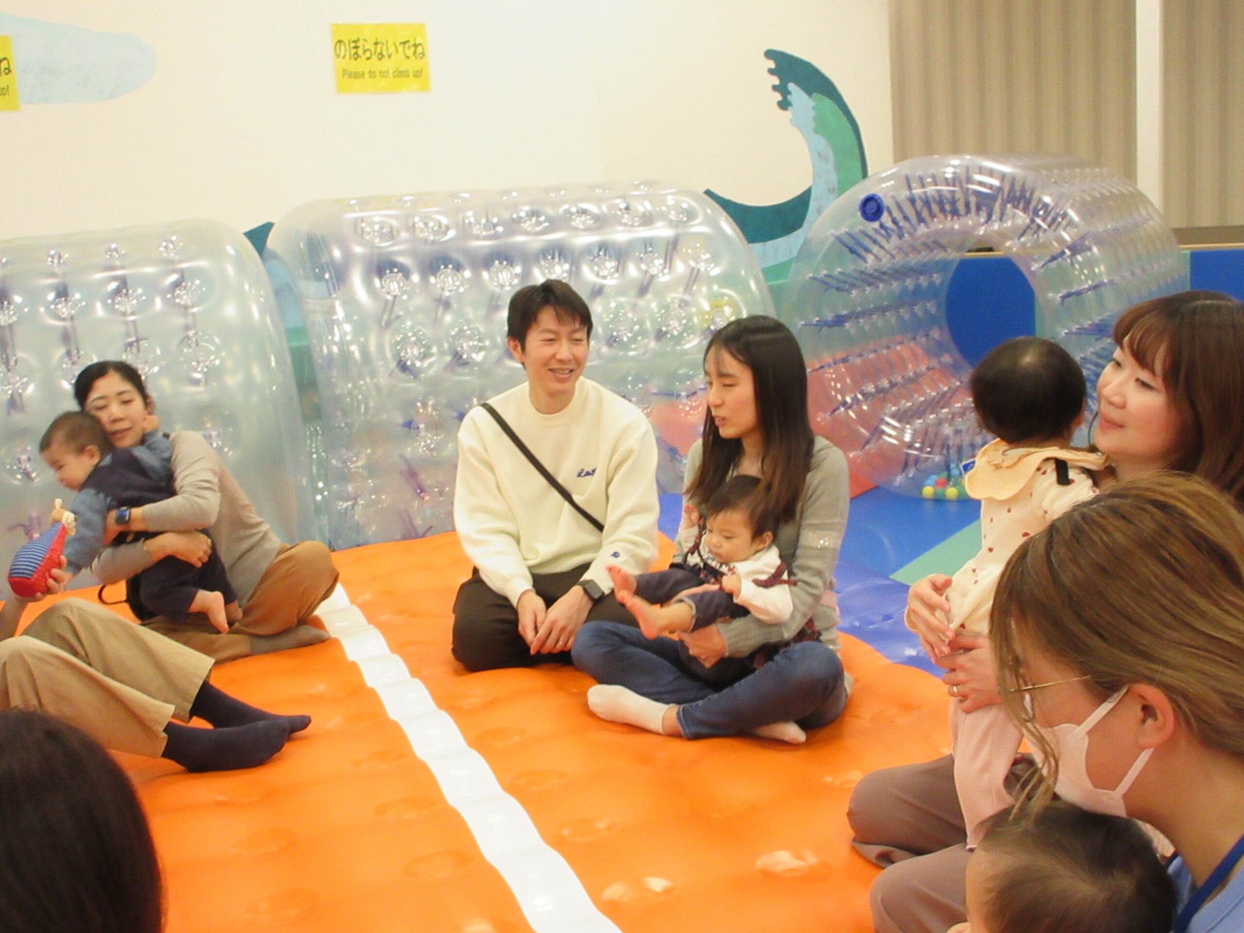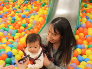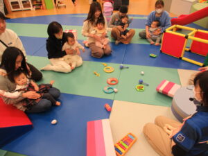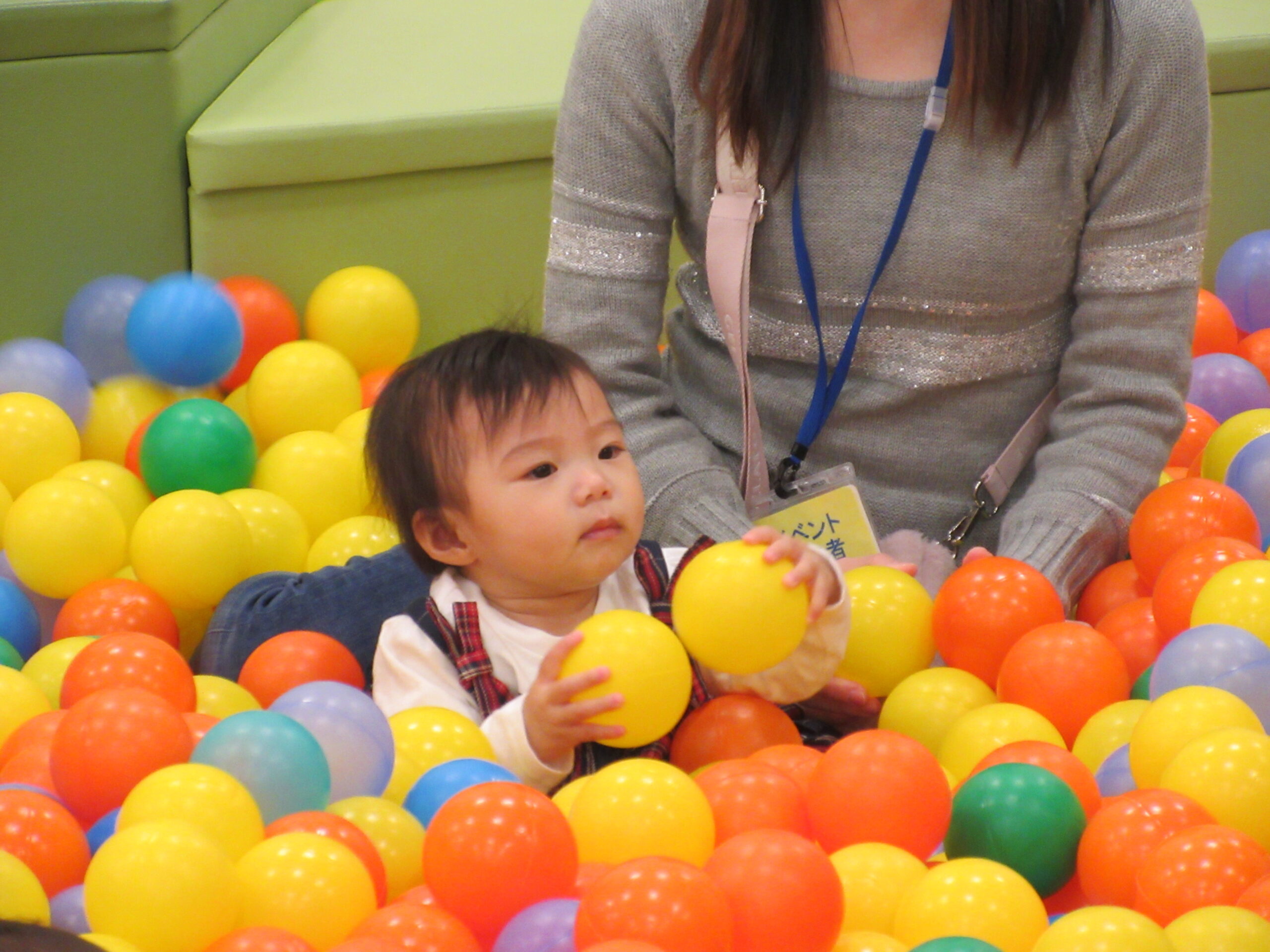 まずはボールプールに入って「ひげじいさん」の手遊びをして、すべり台を楽しんだりしました🔴🔵