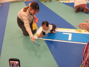 保護者の皆様には音の鳴る遊具を持って、ゴールまで応援していただきました!