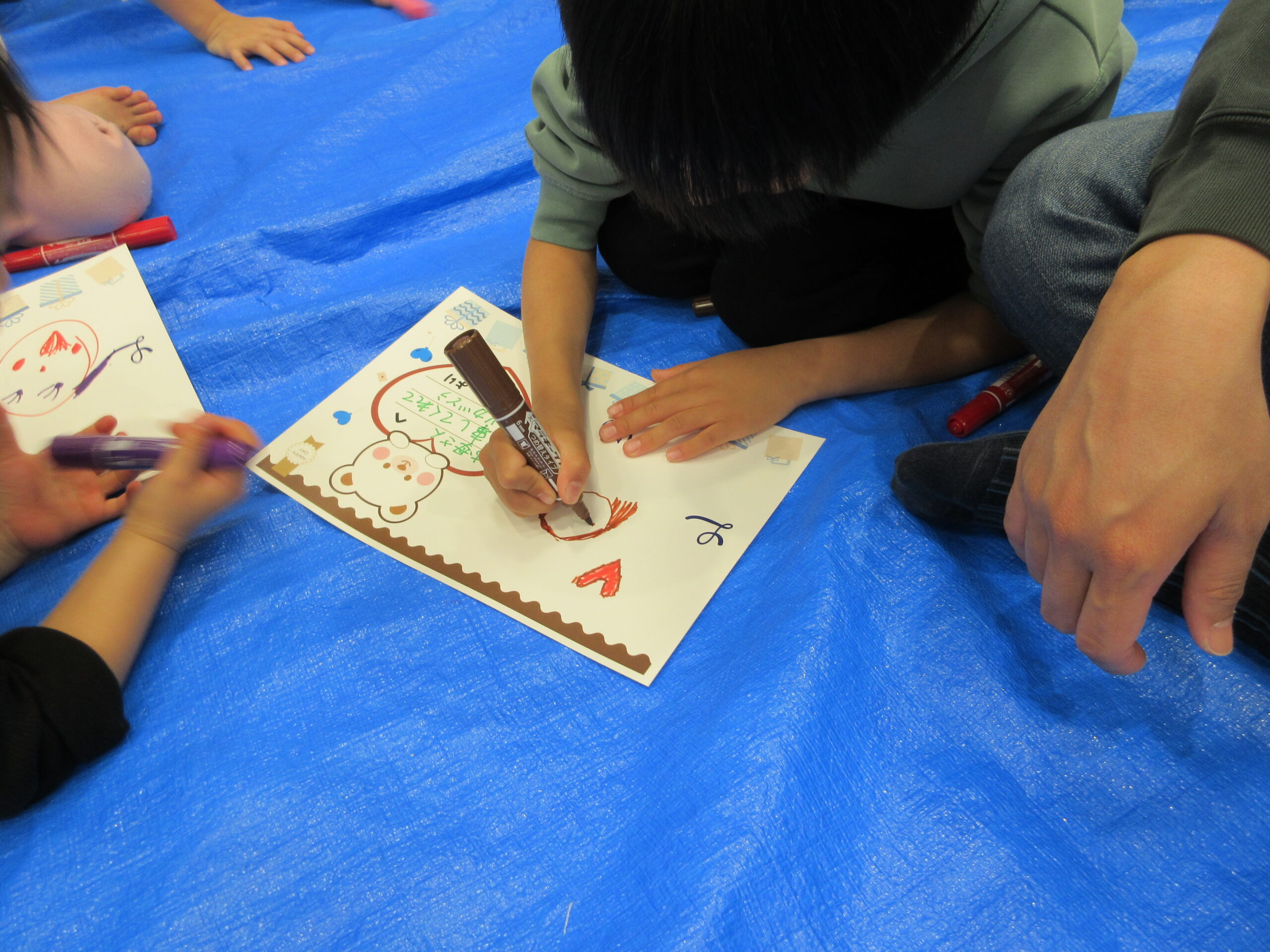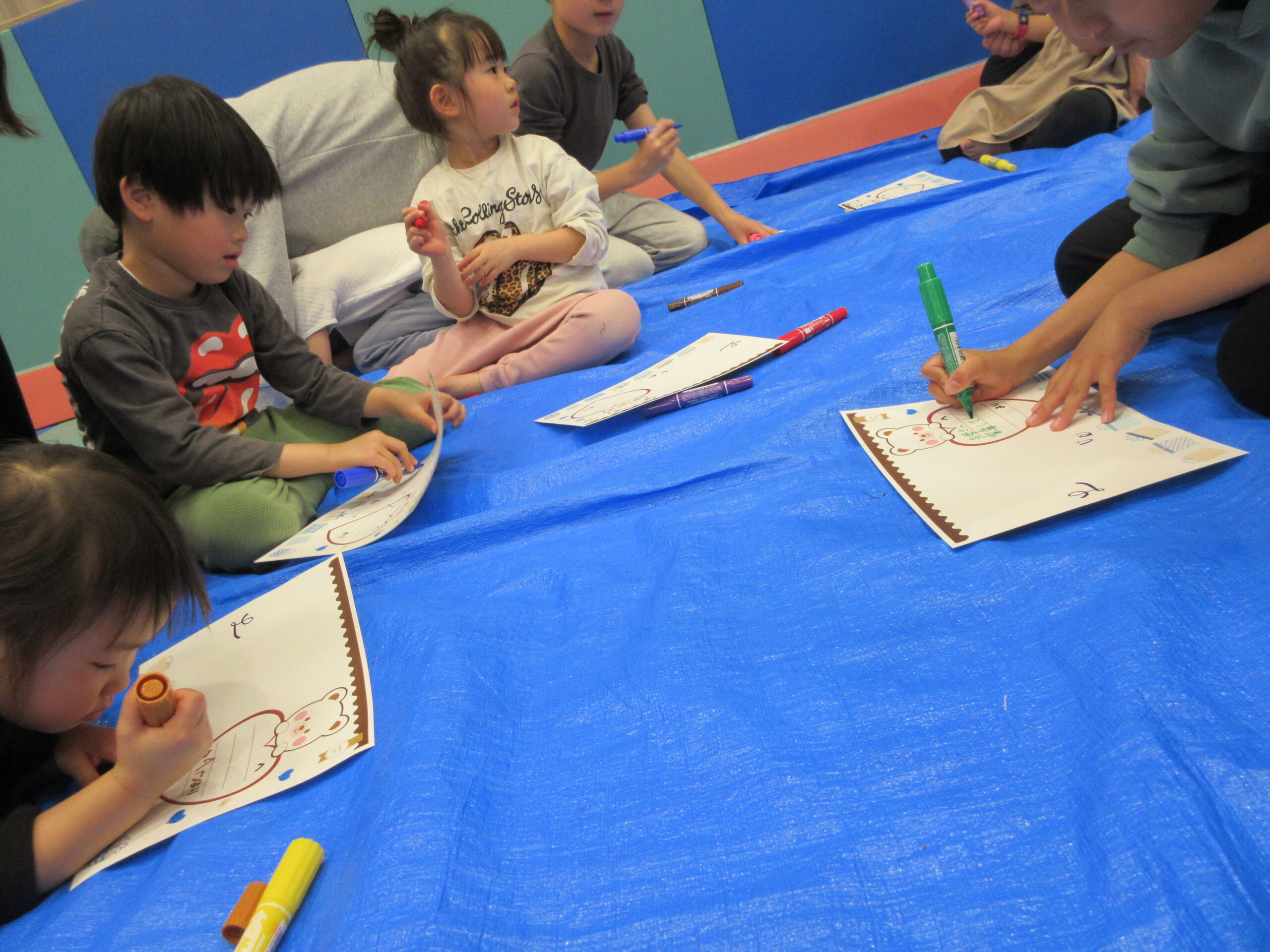 ホワイトデーイベント🍭 カテゴリー:イベント報告 2026年03月14日 みなさん、こんにちは! プレイリーダーのよしみおねえさんです! 今回は3月14日(土)に行われた 「ホワイトデーイベント🍬」のご報告をいたします♪ まずは手遊びで「こちょこちょこ」をやりました♪ 次はメインイベント!! 今回は”メッセージカード🍭”をつくりました😊 クレヨンやペンをつかって好きな人へのメッセージをかいたよ💛💛 みんな上手にできたね😊 ご参加ありがとうございました!