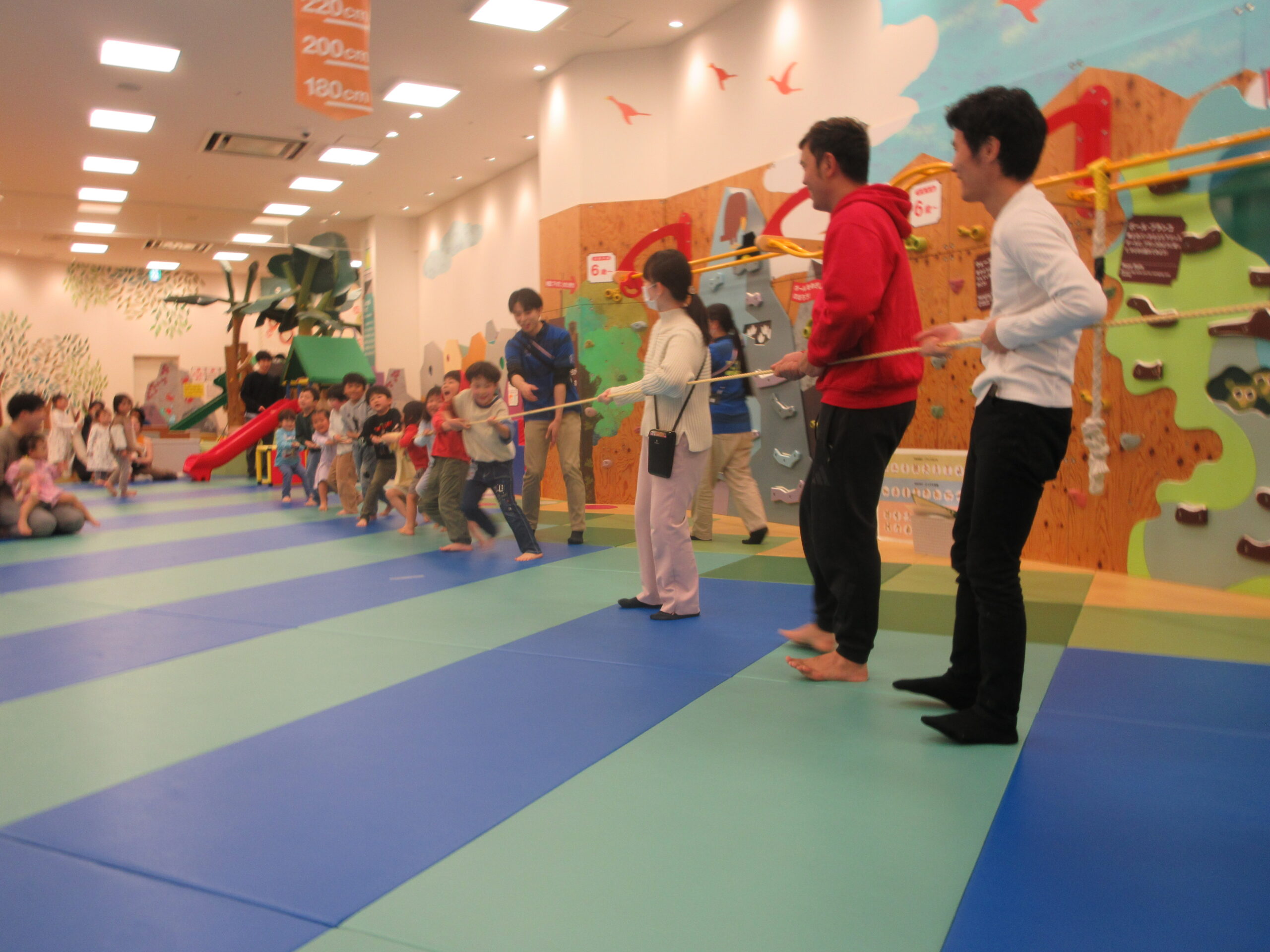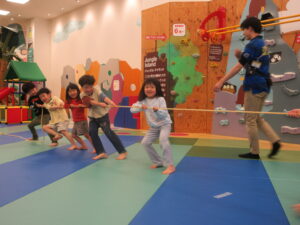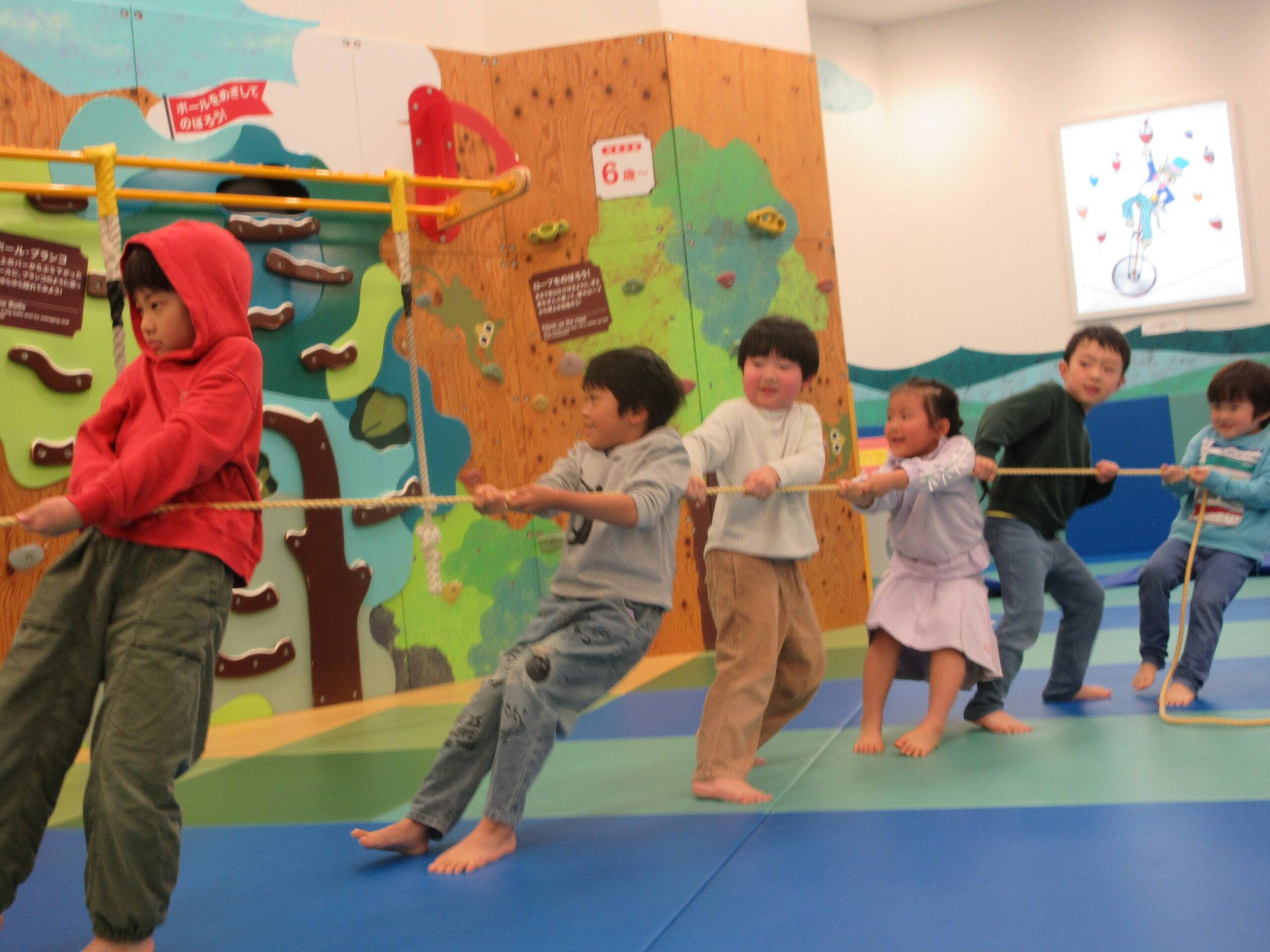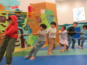36のからだあそび カテゴリー:イベント報告 2026年04月4日 みなさん、こんにちは! プレイリーダーのさゆりおねえさんです! 今回は、3月22日(日)に行われた「36のからだあそび」のご報告をいたします! まずは手遊び「幸せなら手をたたこう」をやりました!! そして次はメインイベント!! 今回は「つなひき」をやりました! チーム分けして3回戦やりました!! みんながんばれ~!!! ご参加ありがとうございました!