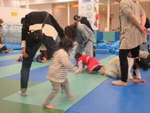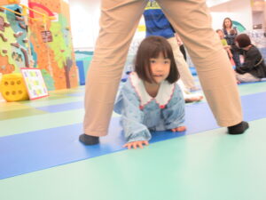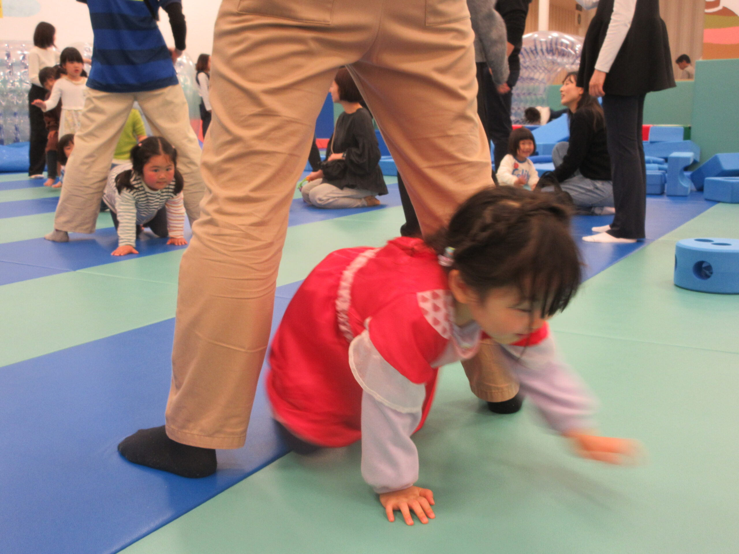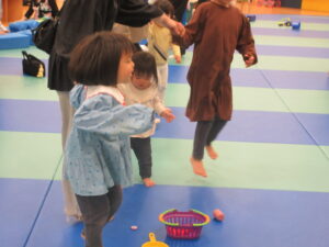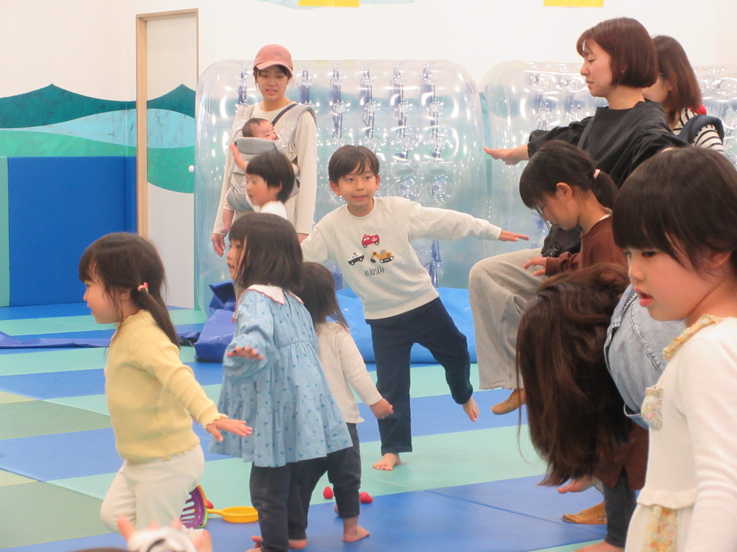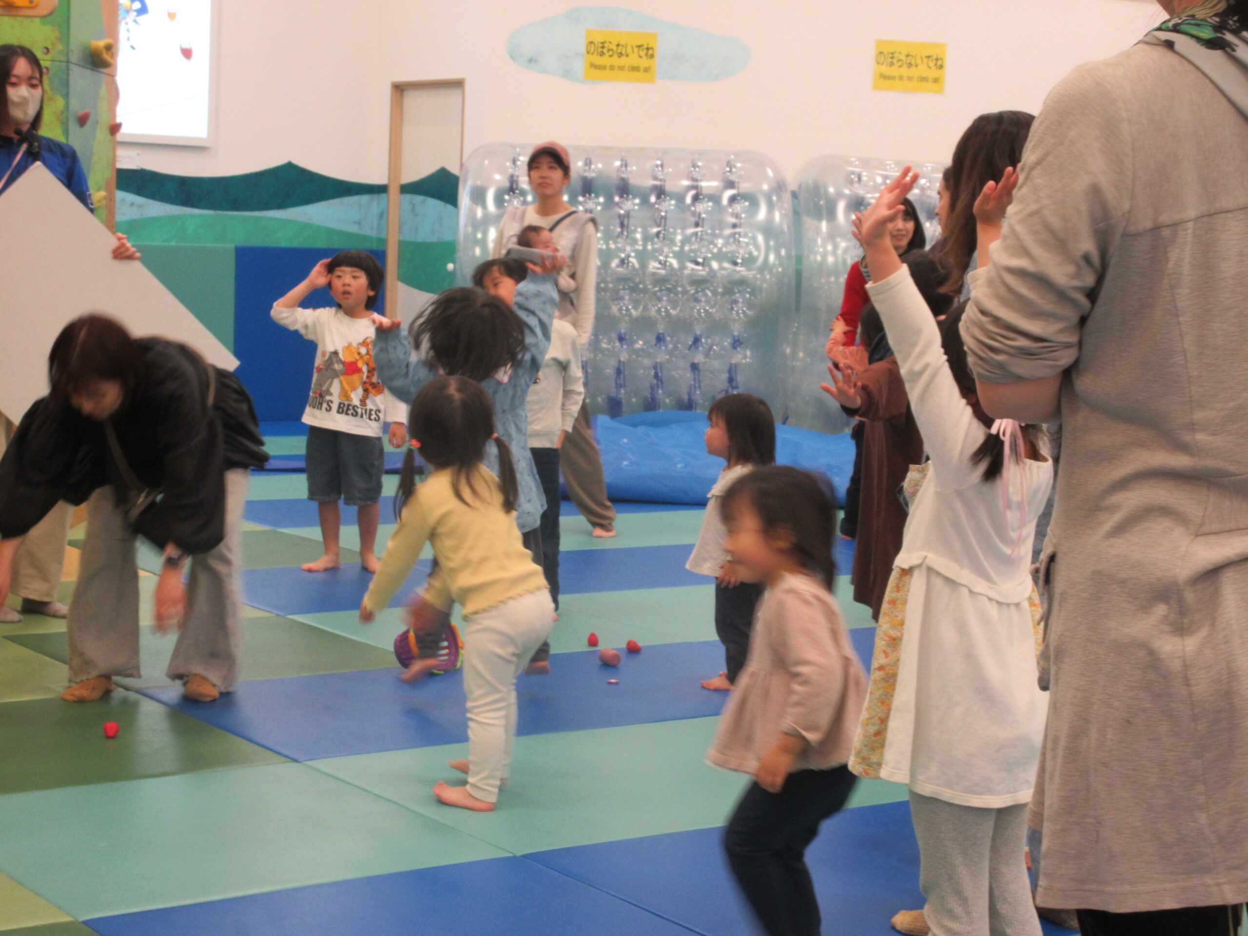 36のからだあそび カテゴリー:イベント報告 2026年04月4日 みなさん、こんにちは! プレイリーダーのさゆりおねえさんです! 今回は、3月25日(木)に行われた「36のからだあそび」のご報告をいたします! まずは手遊び「かみなりどんがやってきた⚡」をやりました!! そして次はメインイベント!! 今回は「すごろく」をやりました! サイコロを転がして何が出るかな~? 最初はおとうさん、おかあさんの足の間くぐれるかな~?? 次は10秒片足バランス!!できるかな~?? 最後はおねえさんの足トンネル!! みんな上手にできました😊 ご参加ありがとうございました!