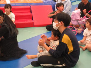 まずは手遊びで「どんな色が好き」を歌ったり、ボール遊びをしたりしました!!