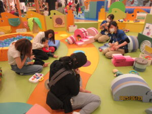 みなさん、こんにちは! プレイリーダーのよしみおねえさんです! 今回は、6月3日(火)に行われた赤ちゃんイベント 「ボブルスであそぼう」のご報告をいたします! まずは、手遊びで「やさいのうた」をうたいました♬ 次は、メインのボブルスです! ゾウさんは背中をハイハイしたり歩くだけでなく、ひっくり返してゆらゆらあそぶのもおすすめです☆ ワニさんやゾウさんをならべてハイハイしたり、…続きを読む