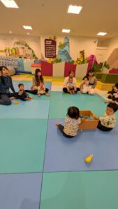 エアトラックの上で、親子でジャンプをしたり、ハイハイをしたり!