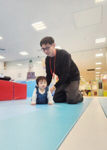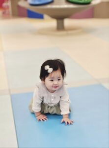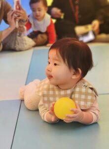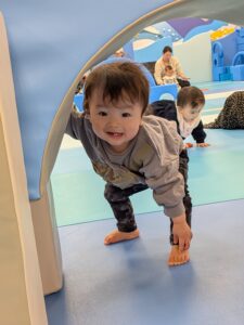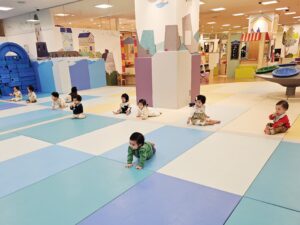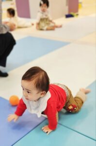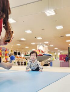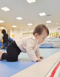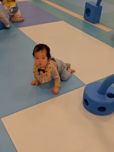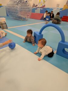 はいはいチャレンジではスタートして眠くなっちゃうお友達や、お友達のことを迎えに来てくれるお子様もいます!