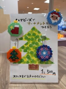 ハマビーズのクリスマスオーナメントづくりなどを行います。