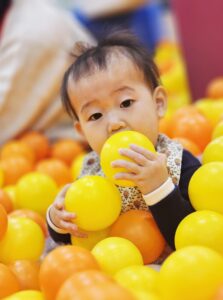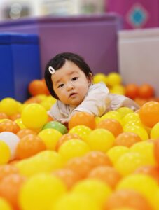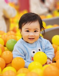 ボールプールの中は、ふわふわしていて、お子さまにとって沢山の刺激が!