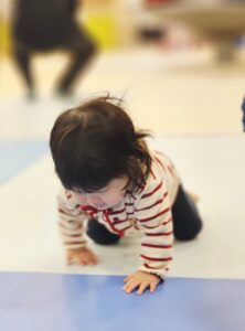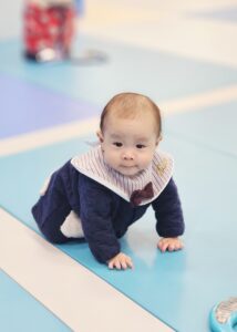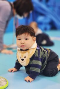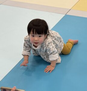 はいはいチャレンジではスタートして眠くなっちゃうお友達や、お友達のことを迎えに来てくれるお子様もいます!