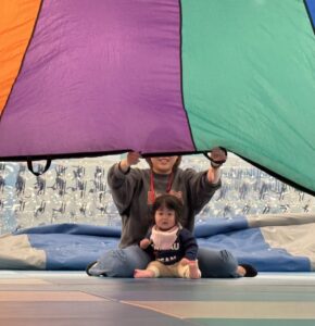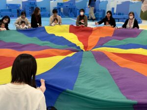 頑張った後は大きな布であそびました!