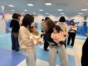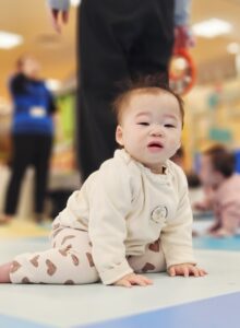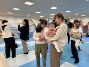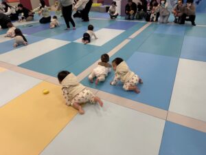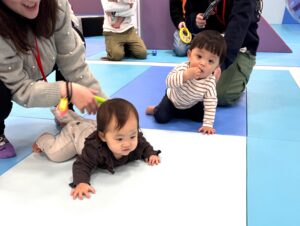 はいはいチャレンジではスタートして眠くなっちゃうお友達や、お友達のことを迎えに来てくれるお子様もいます!