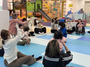今回はリズムあそびをしながらグループに分かれて、自己紹介や好きなことなどお話ししていただきました。