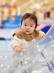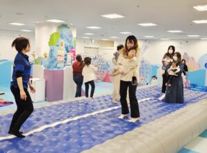 エアトラックの上で、親子でジャンプをしたり、ハイハイをしたり!