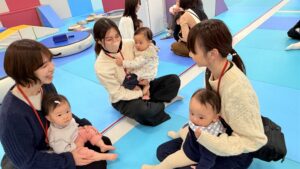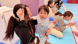 ママと一緒に不思議な感覚できょろきょろしたりニコニコしたり色々な表情が見られました。