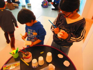親子で協力しながら作り、紙コップに