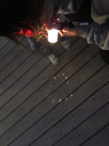 作った紙コップに携帯電話の光を当てると