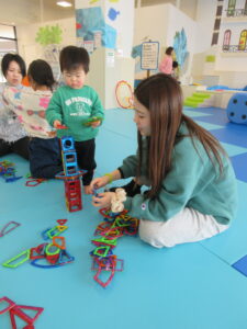 親子で協力しながら積み上げ、