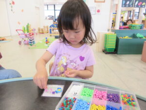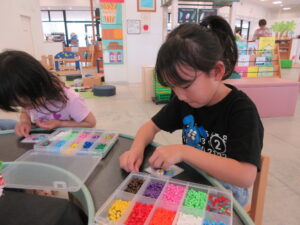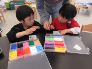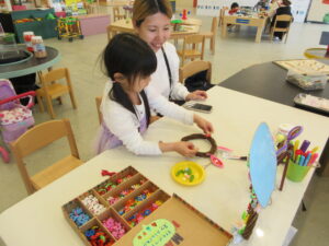 ビーズを置いたり、いろんな色を使って