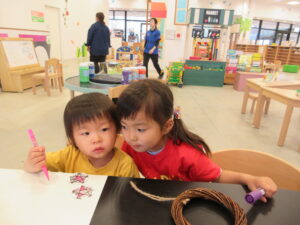 保護者の方と協力して飾りつけをしていました!