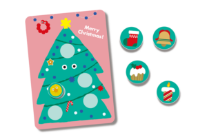 クリスマスツリーに飾れる5種類のシールをお渡しできます!