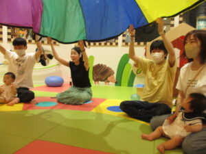 好評のベビー向けイベント「大きい布であそぼう!」 大きい布の中に入るとどんな気持ちかな?