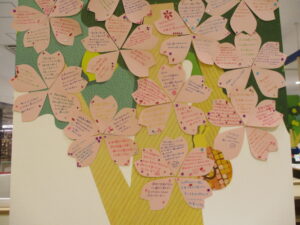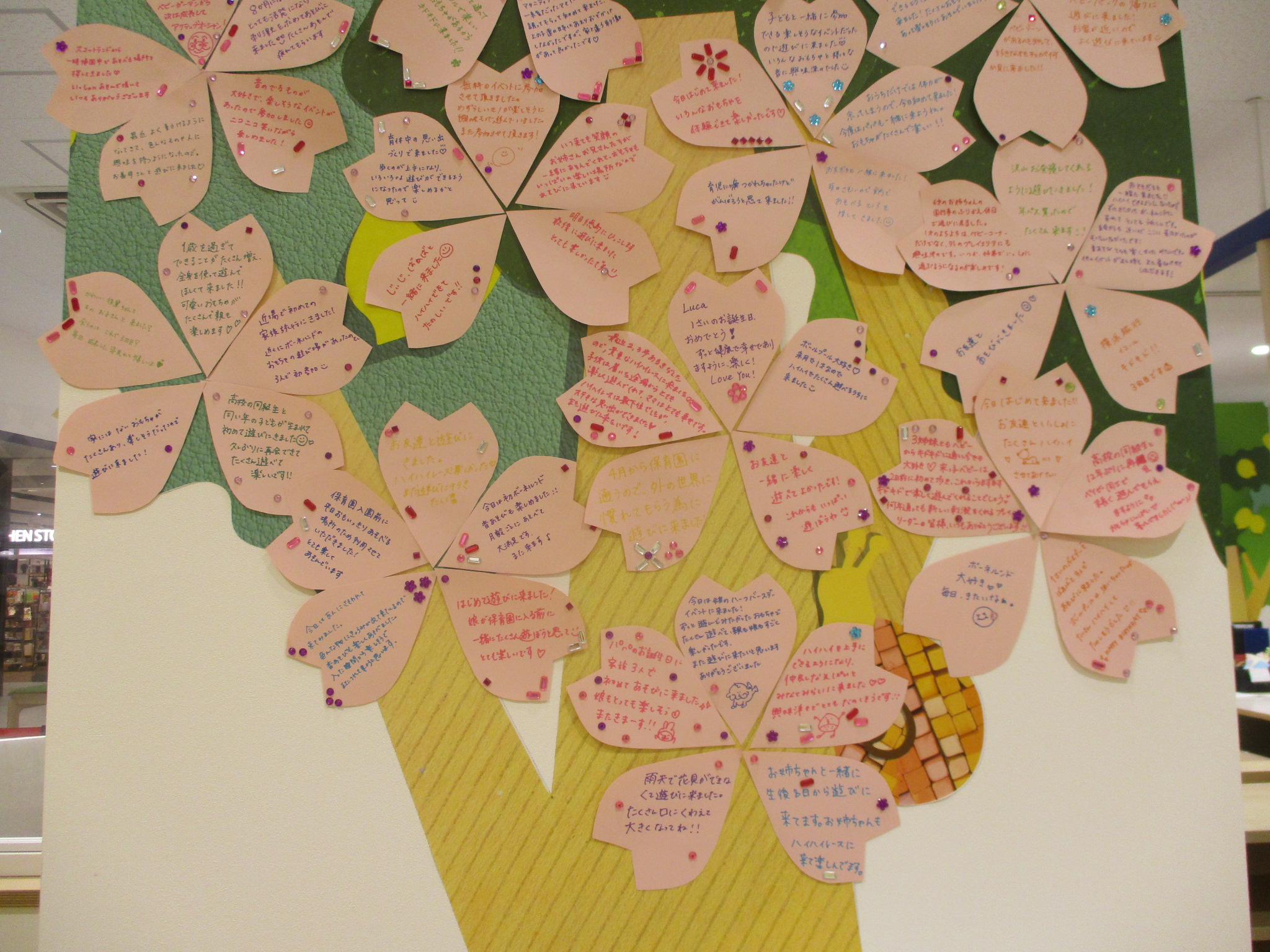 今日キドキドにあそびに来た「ワケ」を桜の花びらに書いて