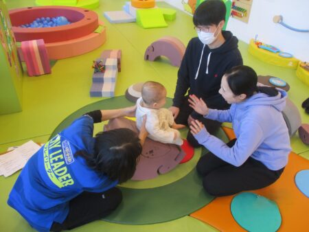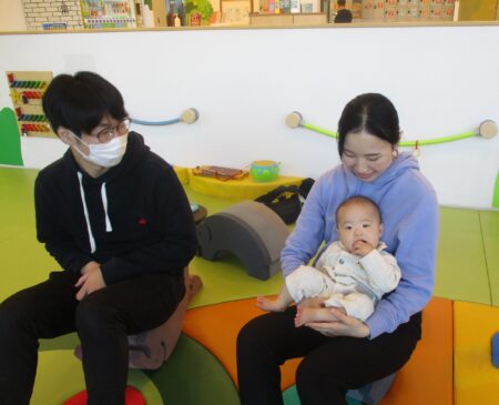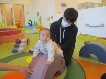 最初は恐る恐るでしたが、横からパパとママがお声をかけて応援します。