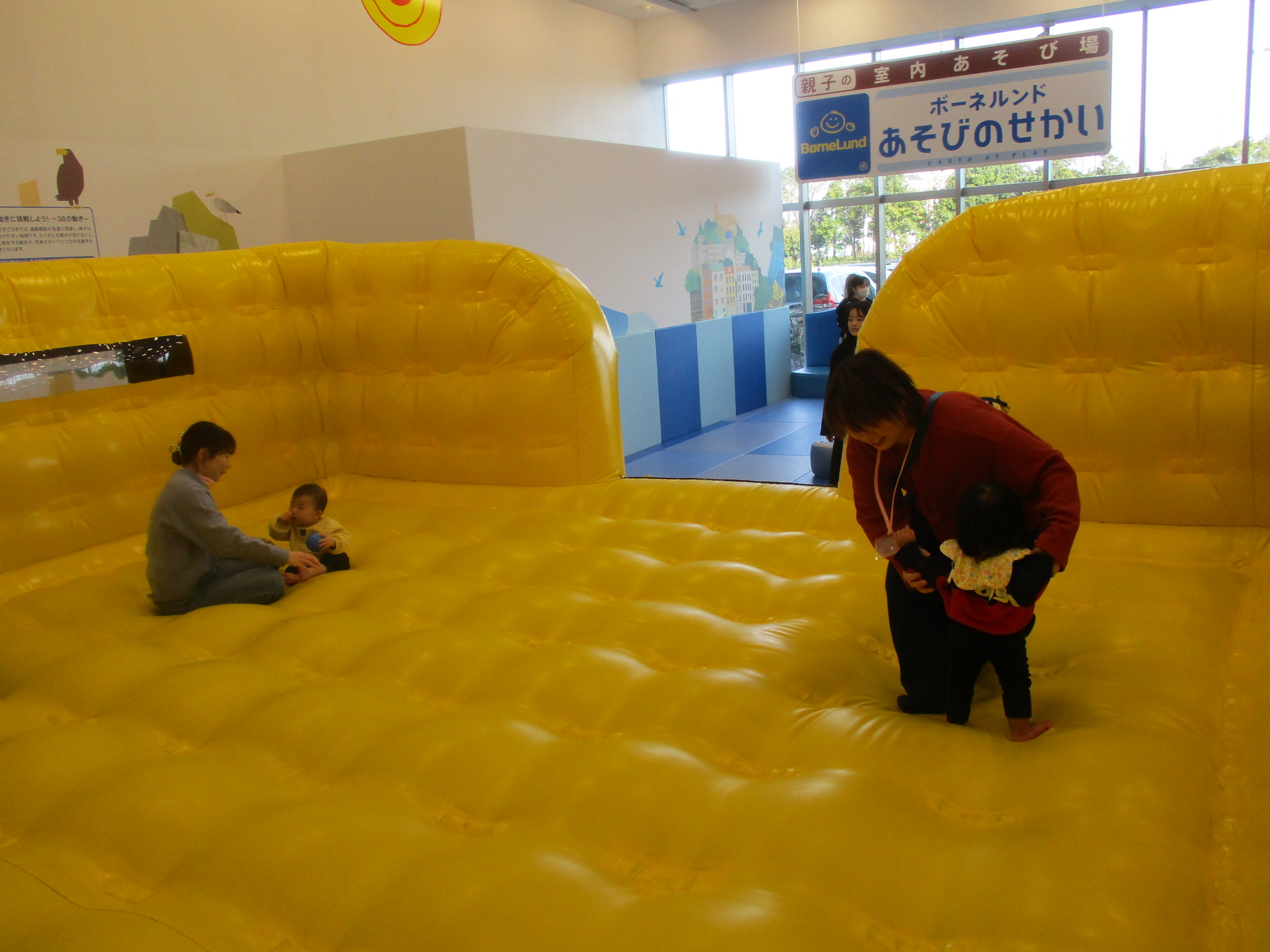 エアキャッスルは初めての感覚!ふわふわで気持ちいいね~