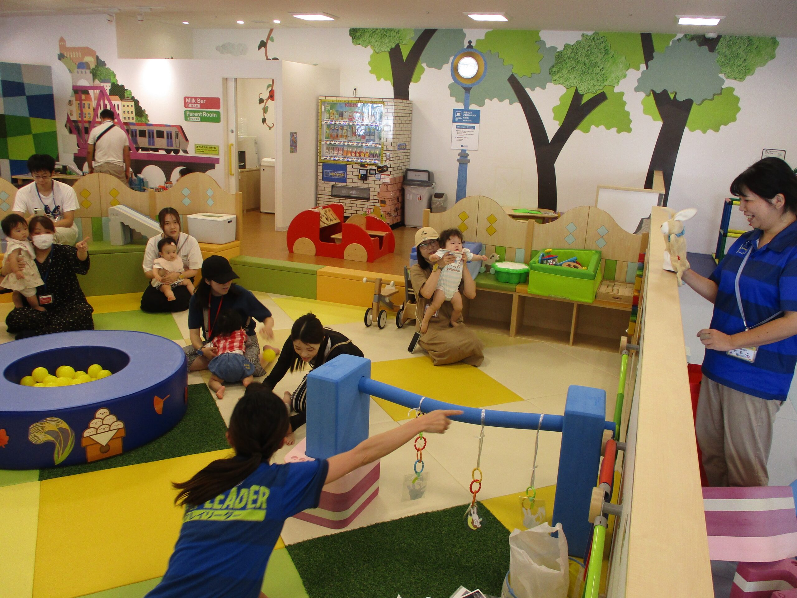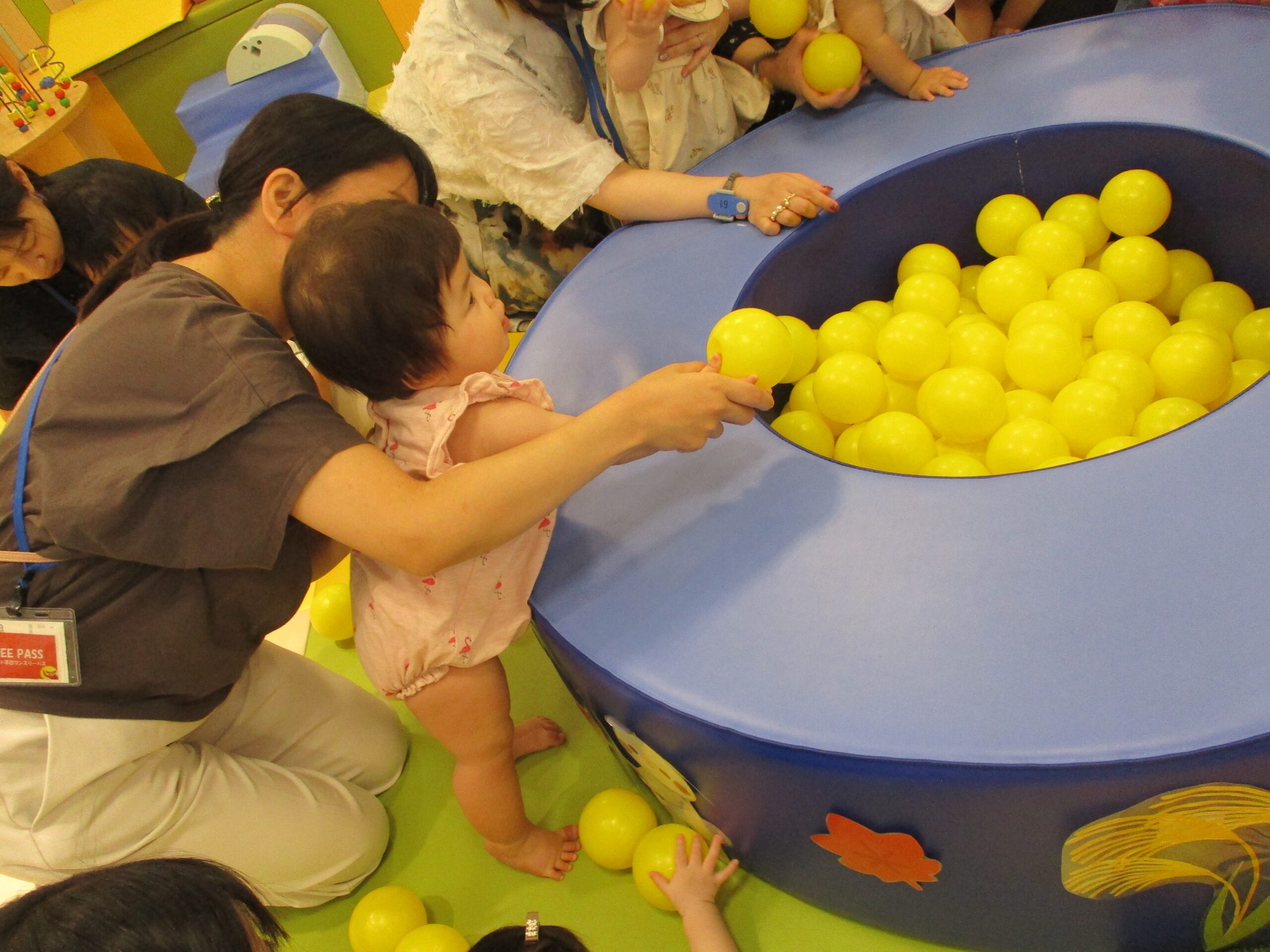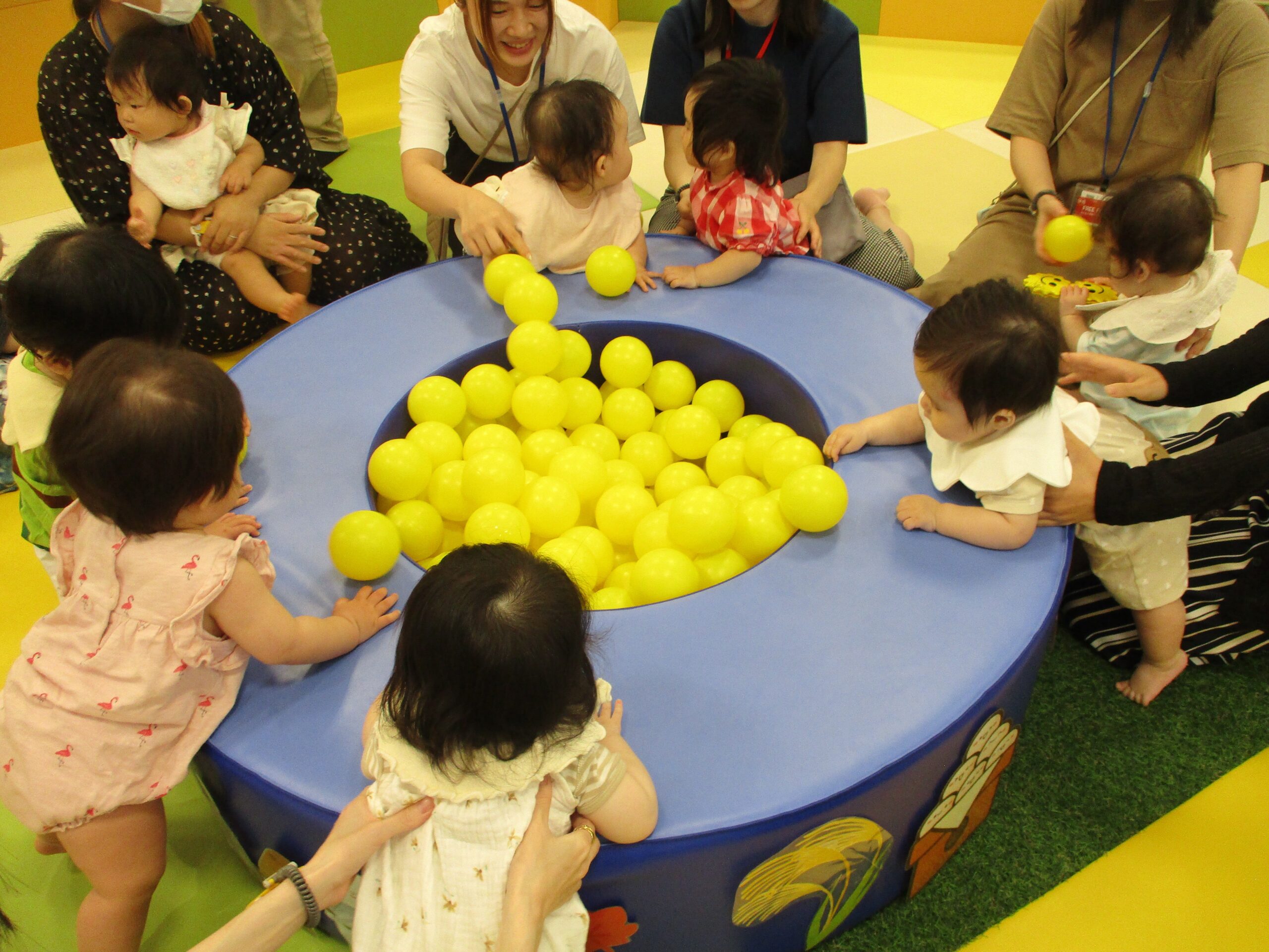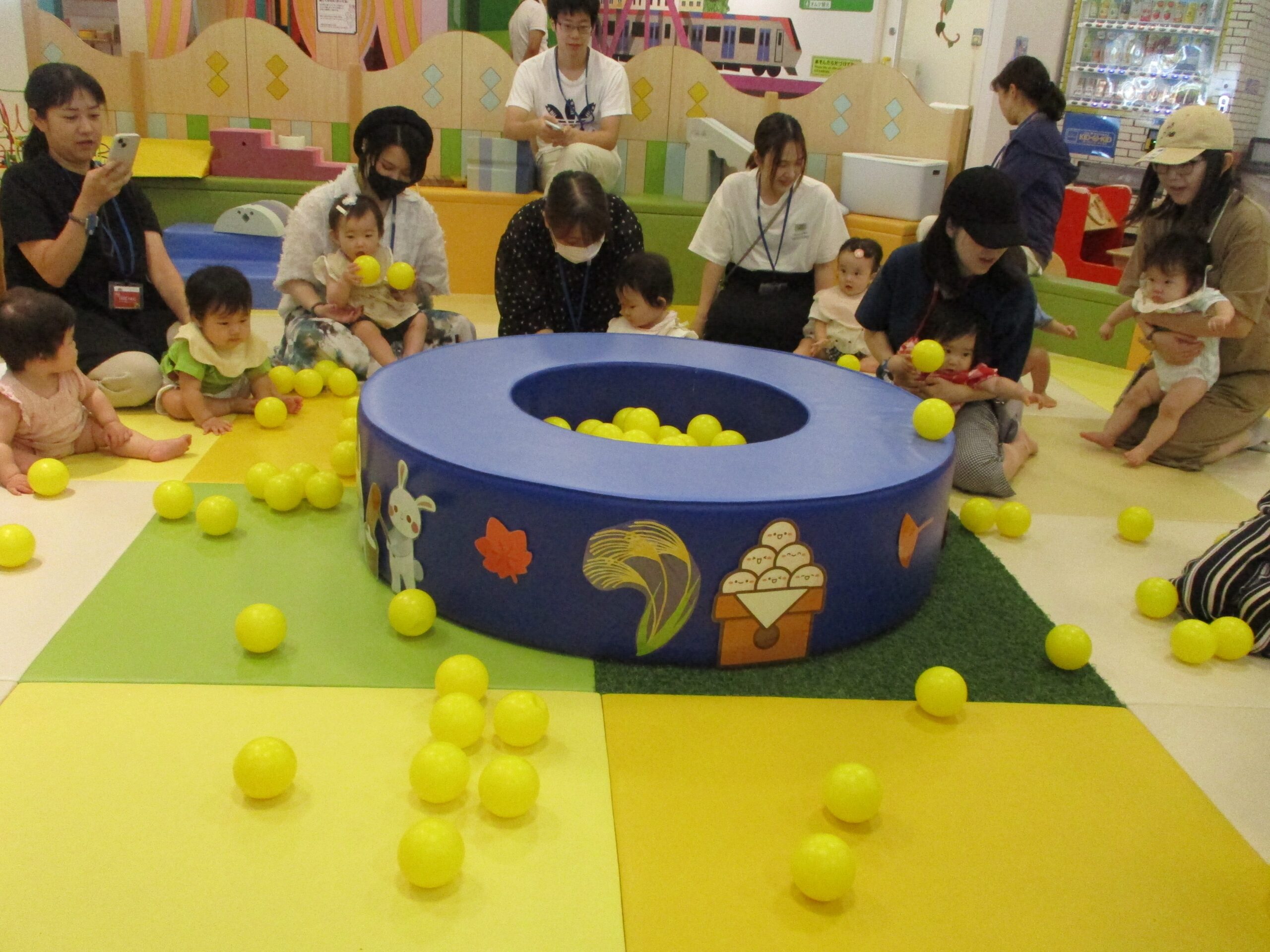 みんなで黄色いボールを玉入れをして、、、、