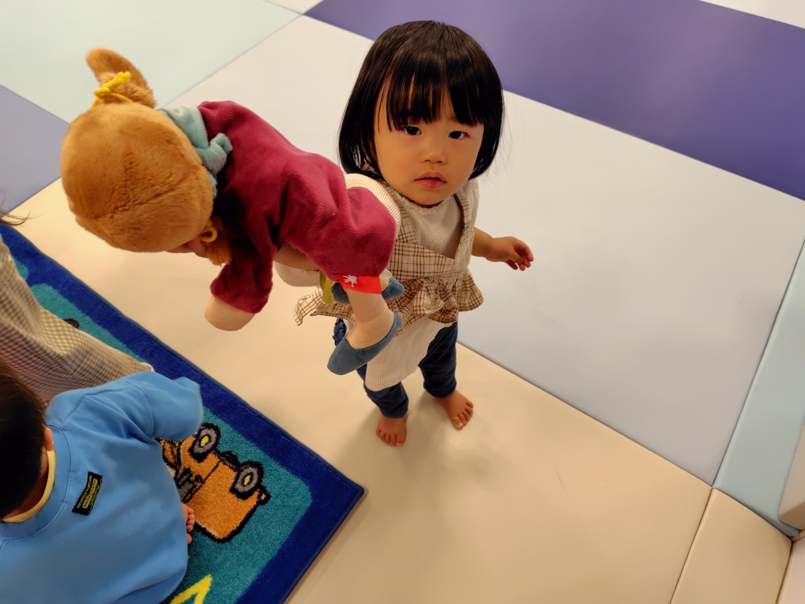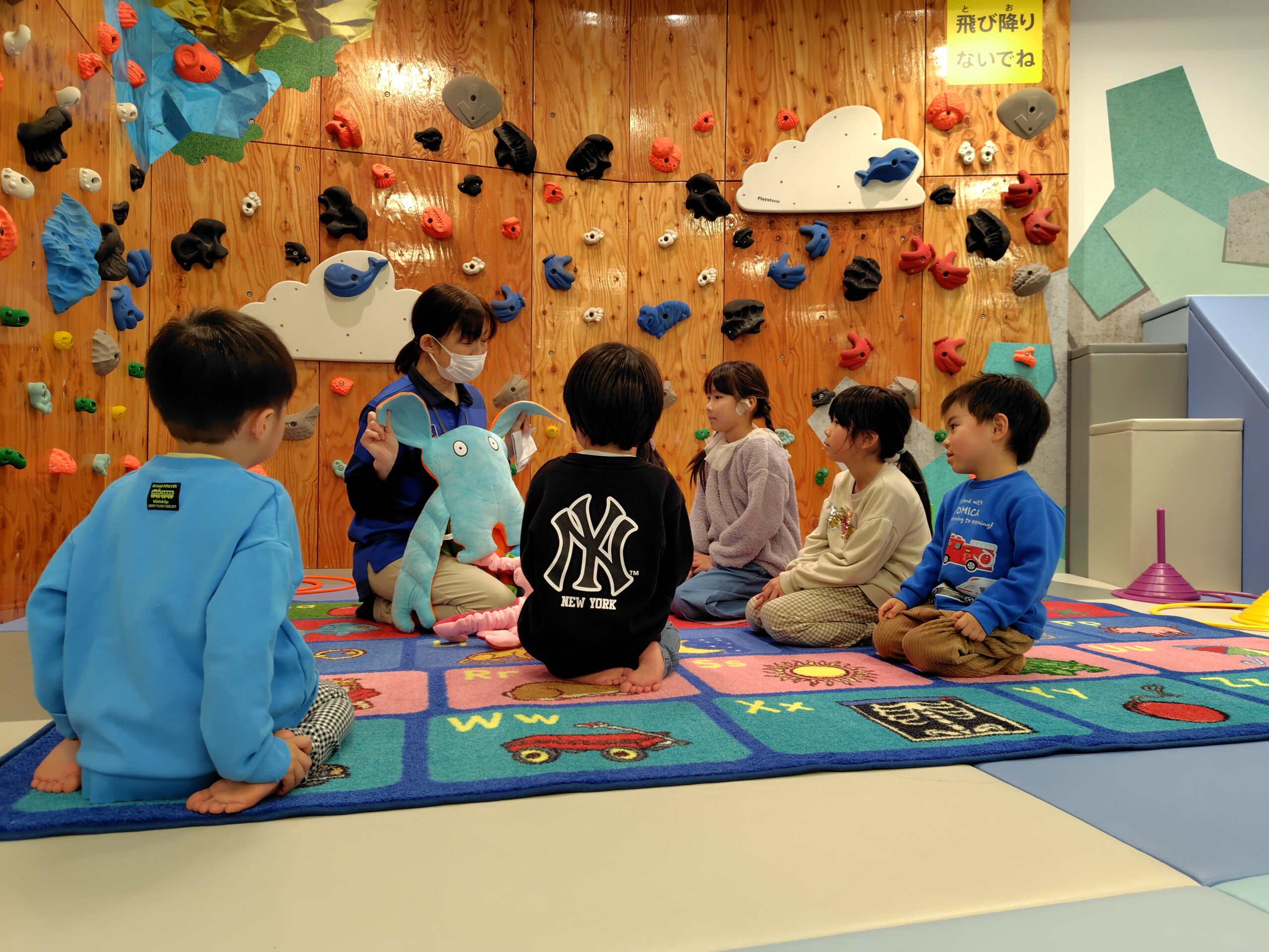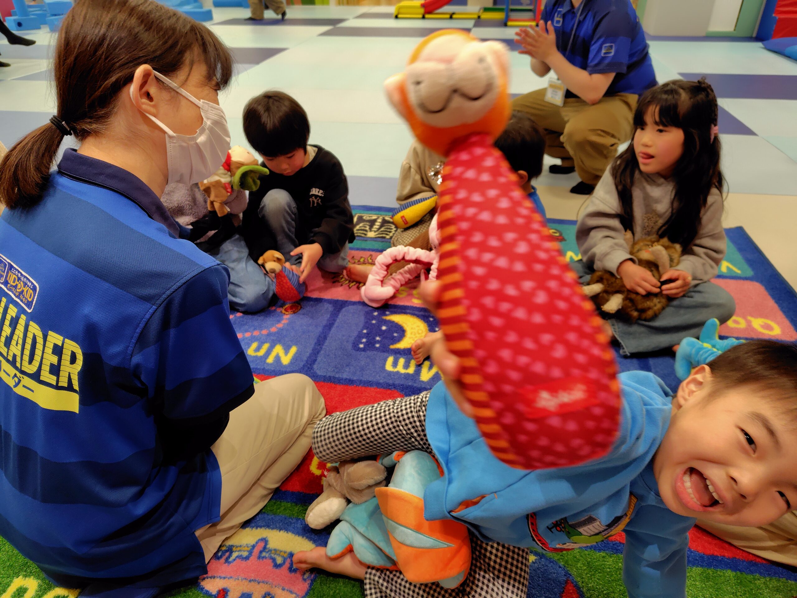 隠れている間、スタッフが別のぬいぐるみの遊具の紹介をしましたよ(^^♪