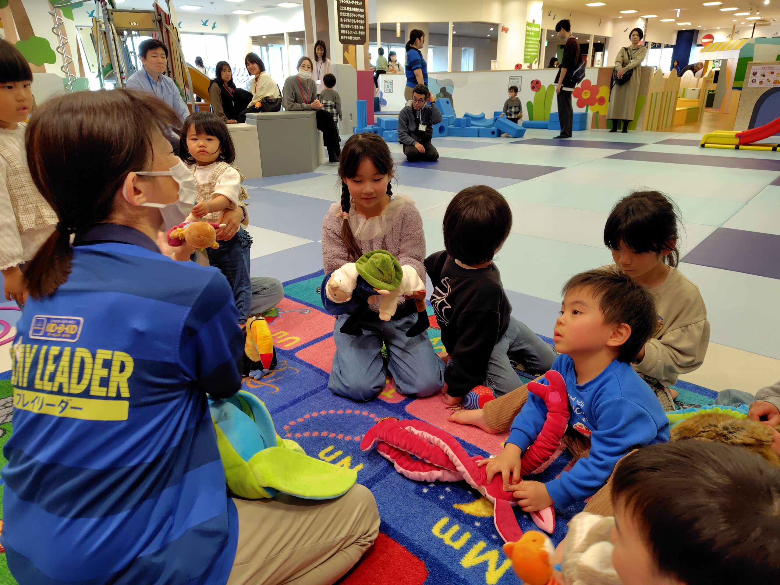 まずはお兄さん、お姉さんたちが、ぬいぐるみさんと自己紹介です♪