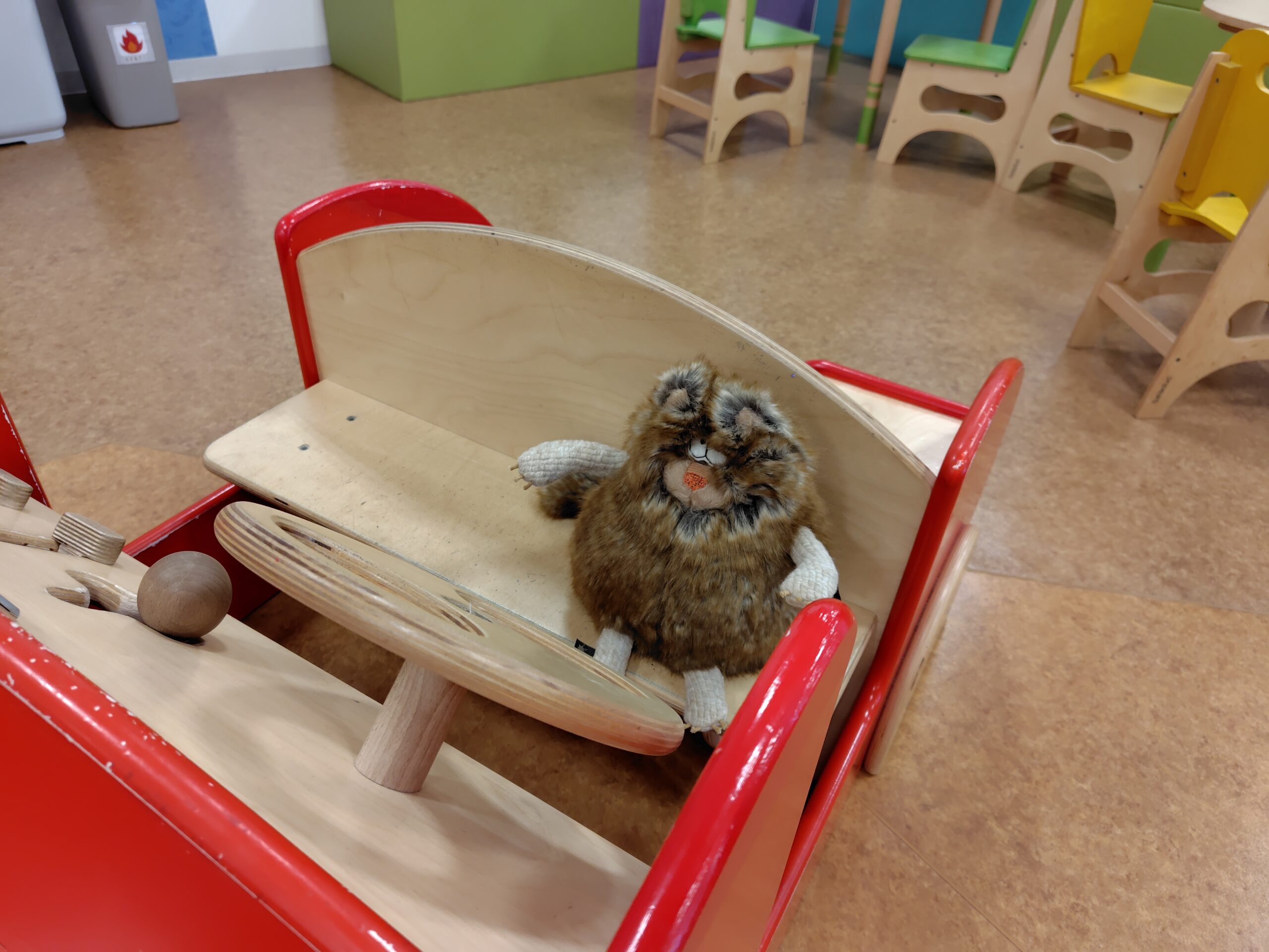 隠れている間、スタッフが別のぬいぐるみの遊具の紹介をしましたよ(^^♪